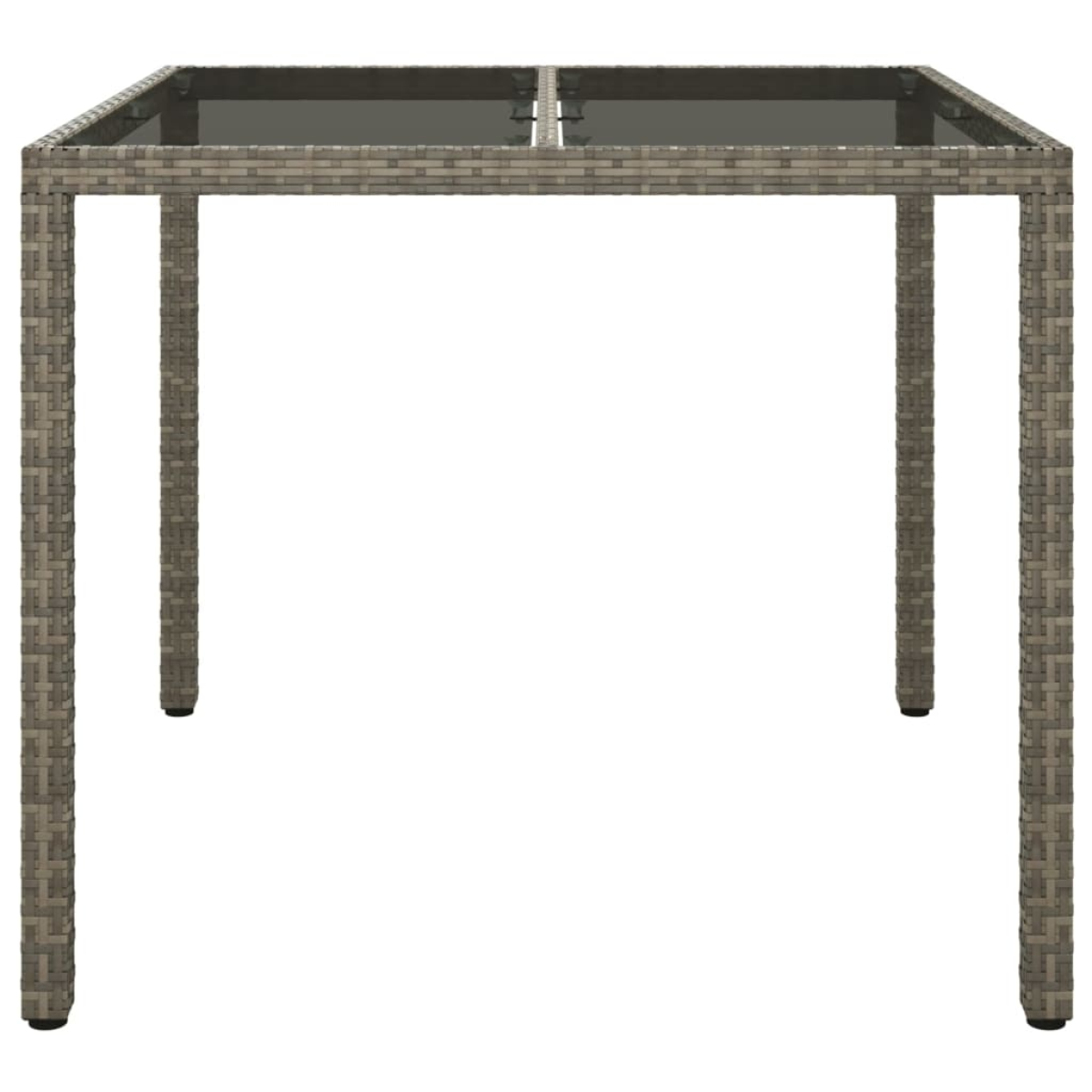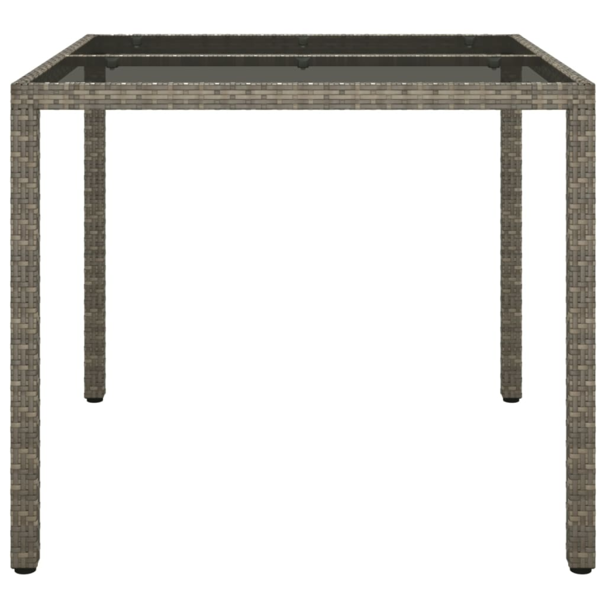 vidaXL Garden Table 90x90x75 cm Tempered Glass and Poly Rattan Grey