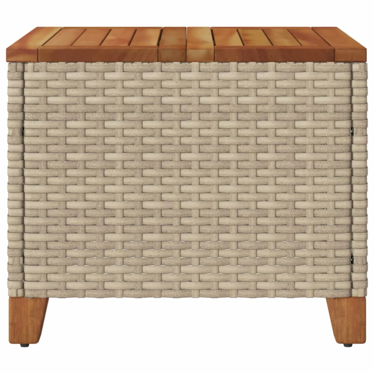 Gather around this garden table to enjoy a cup of coffee or have a chat with your family and friends in the garden, backyard, or on the patio! Durable material: PE rattan, also known as poly rattan, is a strong, low-maintenance synthetic material that looks like natural rattan. It's lightweight, easy to clean, and commonly used for outdoor furniture due to its durability and weather-resistant properties.Stable and easy-to-clean tabletop: This garden table has an acacia wood top that is sturdy, durable, and easy to clean with a damp cloth.Robust and stable frame: The powder-coated steel frame ensures that the garden furniture is strong and stable for daily outdoor use. Good to know:To make sure your outdoor furniture stays beautiful, we recommend protecting it with a waterproof cover.