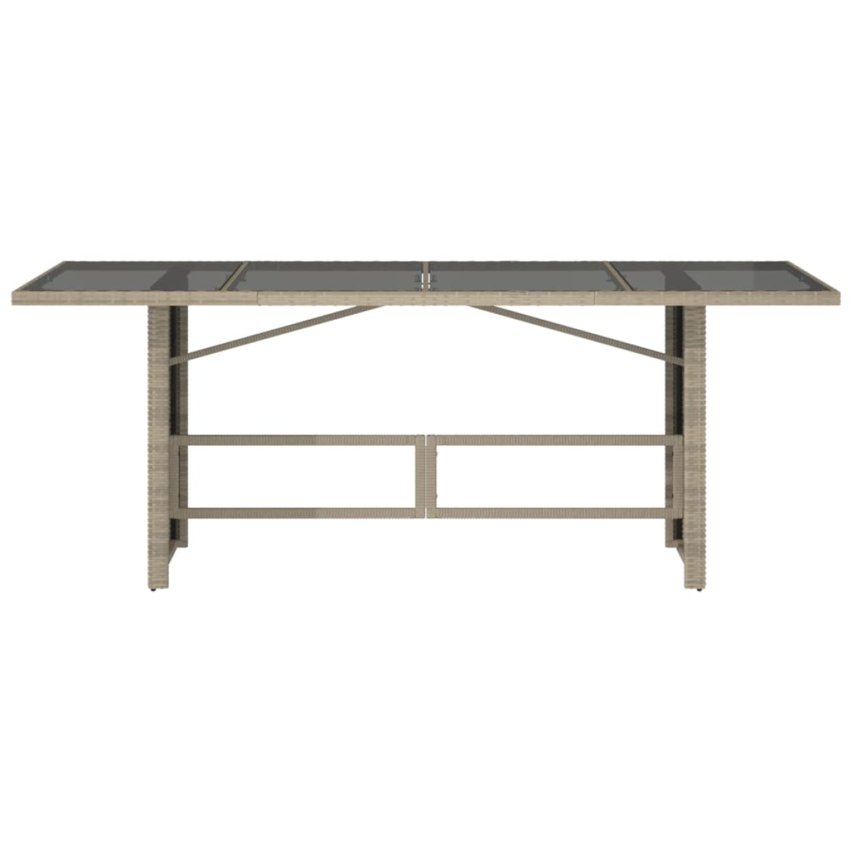 This garden table with a glass top, designed with clean and simple lines, is an excellent choice for your garden, patio, and other outdoor space. Durable material: PE rattan, also known as poly rattan, is a strong, low-maintenance synthetic material that looks like natural rattan. It's lightweight, easy to clean, and commonly used for outdoor furniture due to its durability and weather-resistant properties.Glass tabletop: The outdoor table's top is made from strong and durable tempered glass, making it easy to clean with a damp cloth and adding a touch of elegance to your outdoor space.Robust and stable frame: The powder-coated steel frame ensures that the garden furniture is strong and stable for daily outdoor use. Good to know:To make sure your outdoor furniture stays beautiful, we recommend protecting it with a waterproof cover.