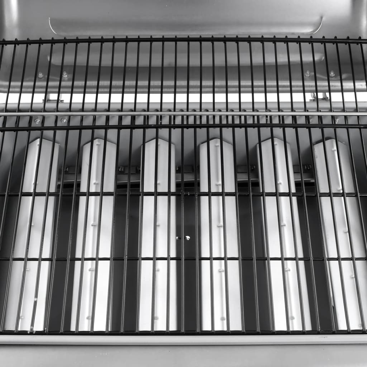 This gas BBQ grill, with 6 burners, is ideal for creating an outdoor feast for your family and friends. It will make your outdoor cooking experience sizzle, effectively turning your backyard into a second kitchen! The gas grill features a stylish and functional design. It has a large cooking surface and a heavy-duty hood with a built-in thermometer which accurately displays the cooking temperature. Side tables offer additional workspace for making sauces or your favourite side dishes. A removable grease drip container is also included, which is easy to clean. Made of heavy-duty materials, the grill is very durable. The shelf underneath provides large space to store cookware and utensils. Thanks to the 2 sturdy castors, the grill is easy to move around. Delivery also includes a BBQ cover to protect the grill from rain and dust. To connect the barbecue to the gas cylinder, a gas hose and a proper pressure regulator are required, which are not included in delivery.