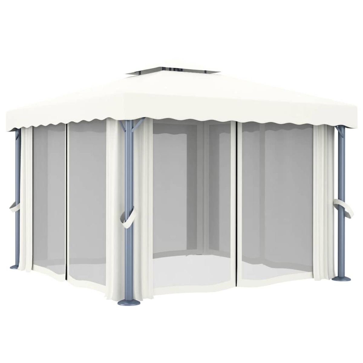 vidaXL Gazebo with Curtain&LED String Lights 3x3 m Cream White