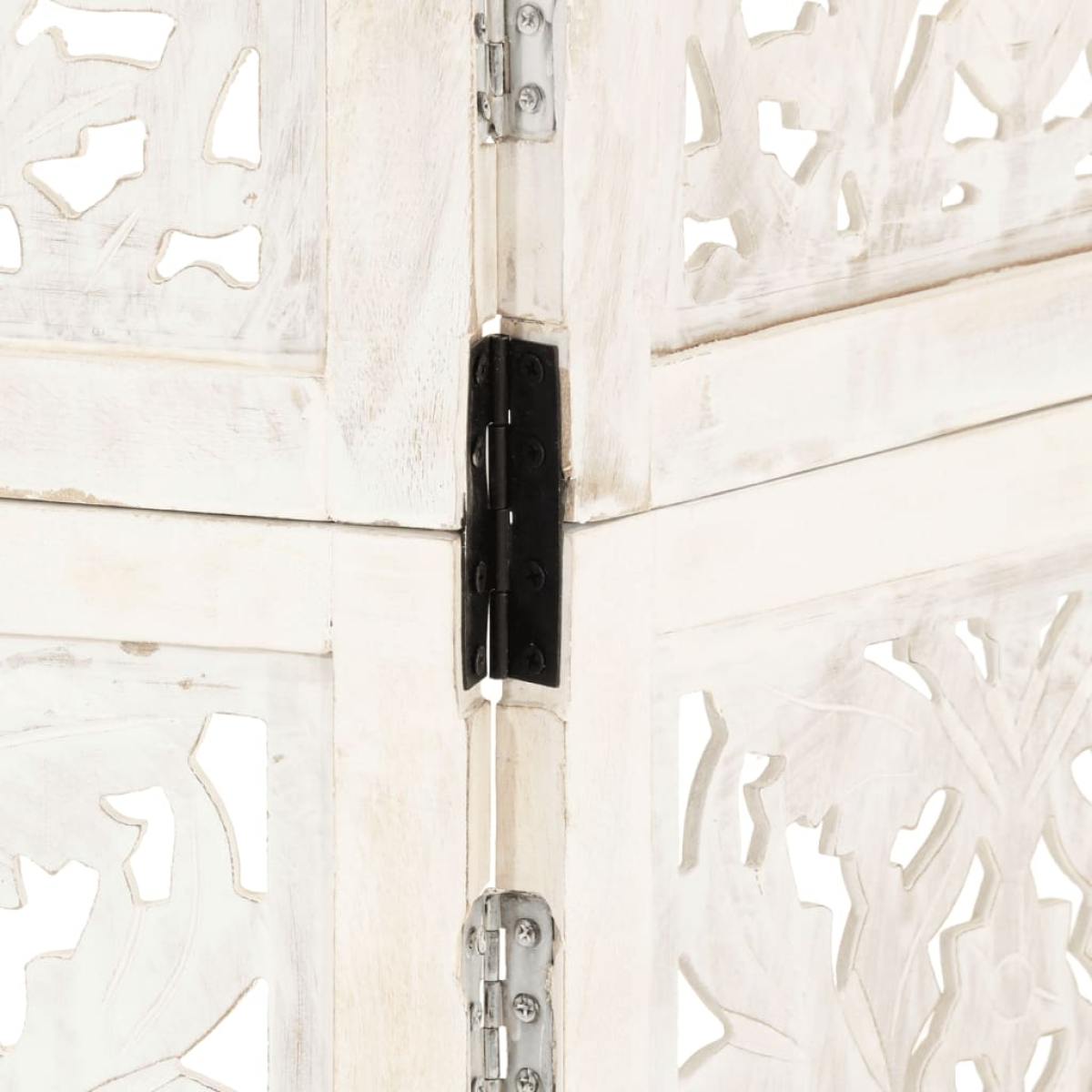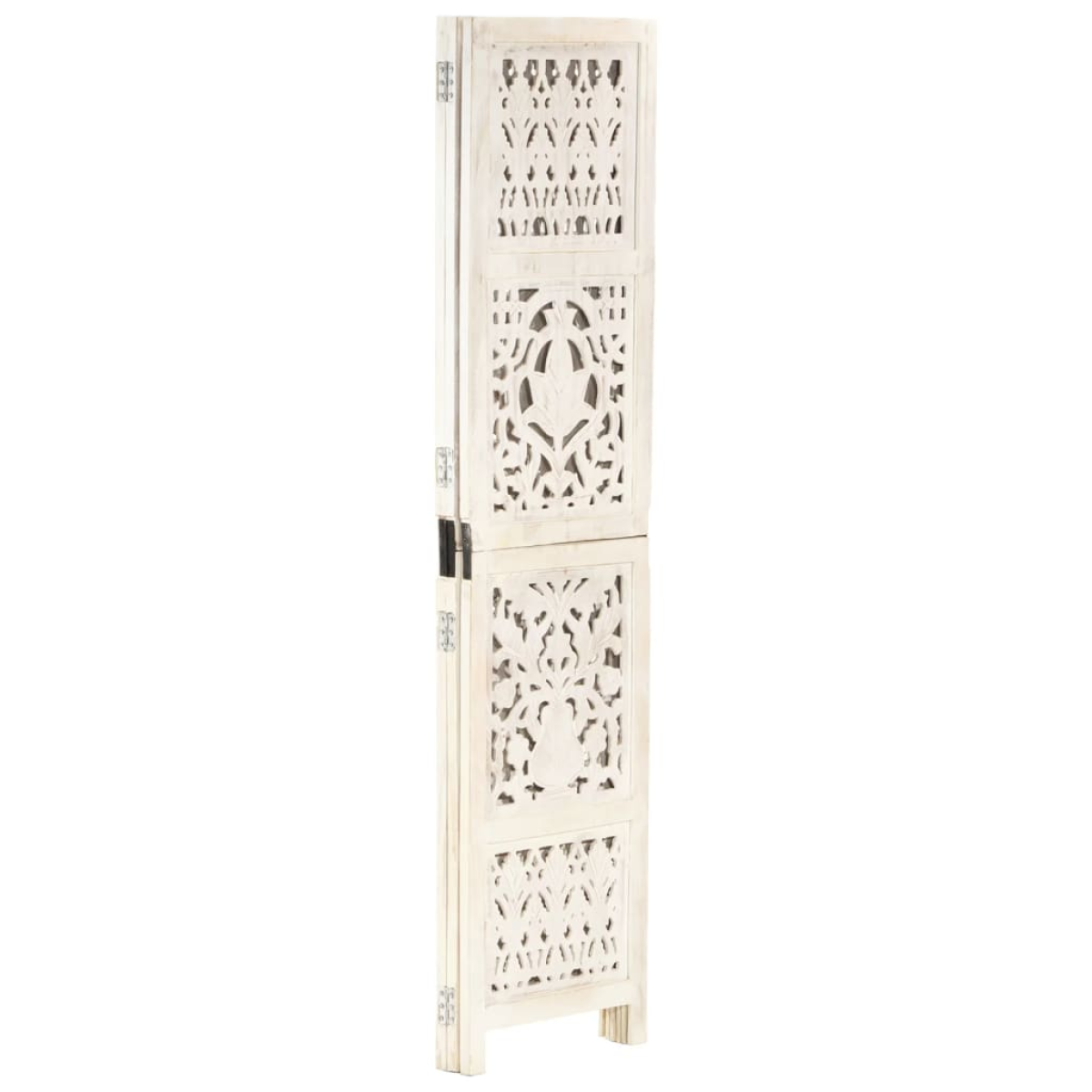 vidaXL Hand carved 3-Panel Room Divider White 120x165 cm Solid Mango Wood