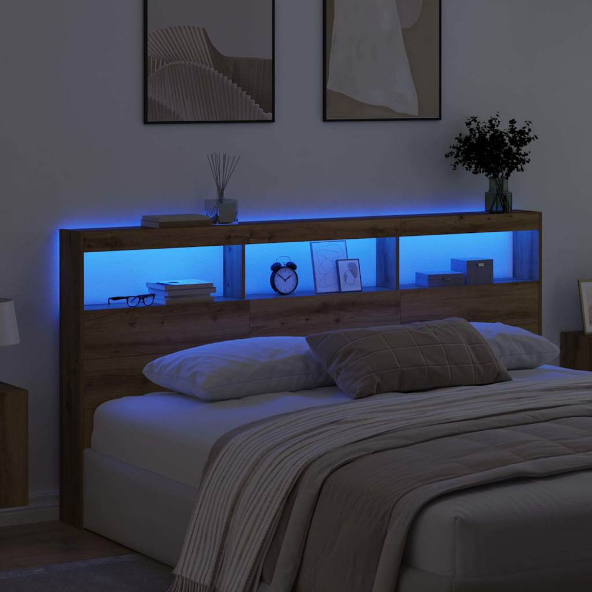 Enhance your bedroom with this modern headboard, expertly designed for simplicity and functionality. Crafted from engineered wood, this headboard blends seamlessly into any bedroom setting, offering a sleek and elegant look. Its versatile design caters to those who desire a contemporary aesthetic, providing the perfect touch to personalize your personal space. Materials: This headboard is crafted from engineered wood, known for its durability and smooth finish. The material ensures a robust structure that withstands everyday use while providing a neat and stylish appearance to your bedroom. Engineered wood is also a choice, adding an environmentally friendly aspect to your furniture collection. Included Components: Integrated within the headboard is a flexible LED strip light that allows customization of your bedroom atmosphere. Choose from a variety of colors to match your mood or time of day. The headboard also features a convenient USB power source, eliminating the need for messy cables and providing easy setup and operation. Features /Function /Design: Designed with a focus on minimalism, this headboard combines clean lines and a smooth texture to add a contemporary touch to any bedroom. The LED lighting not only acts as a practical light source but also enhances the decor, creating a versatile piece that accentuates the beauty of modern furniture. Recommended Uses: This headboard is ideal for those seeking a modern update to their bedroom furnishings. Perfect for adults, teens, or anyone wanting to add a touch of style to their sleeping space. It's adept at fitting in any size bedroom, making it a flexible option for diverse settings. Care &Maintenance: Caring for this headboard is simple, as it requires only a gentle wipe with a damp cloth to keep it looking pristine. The engineered wood surface is resistant to excessive wear, allowing the headboard to maintain its visual appeal and functionality over time. Always follow the care recommendations to ensure longevity.