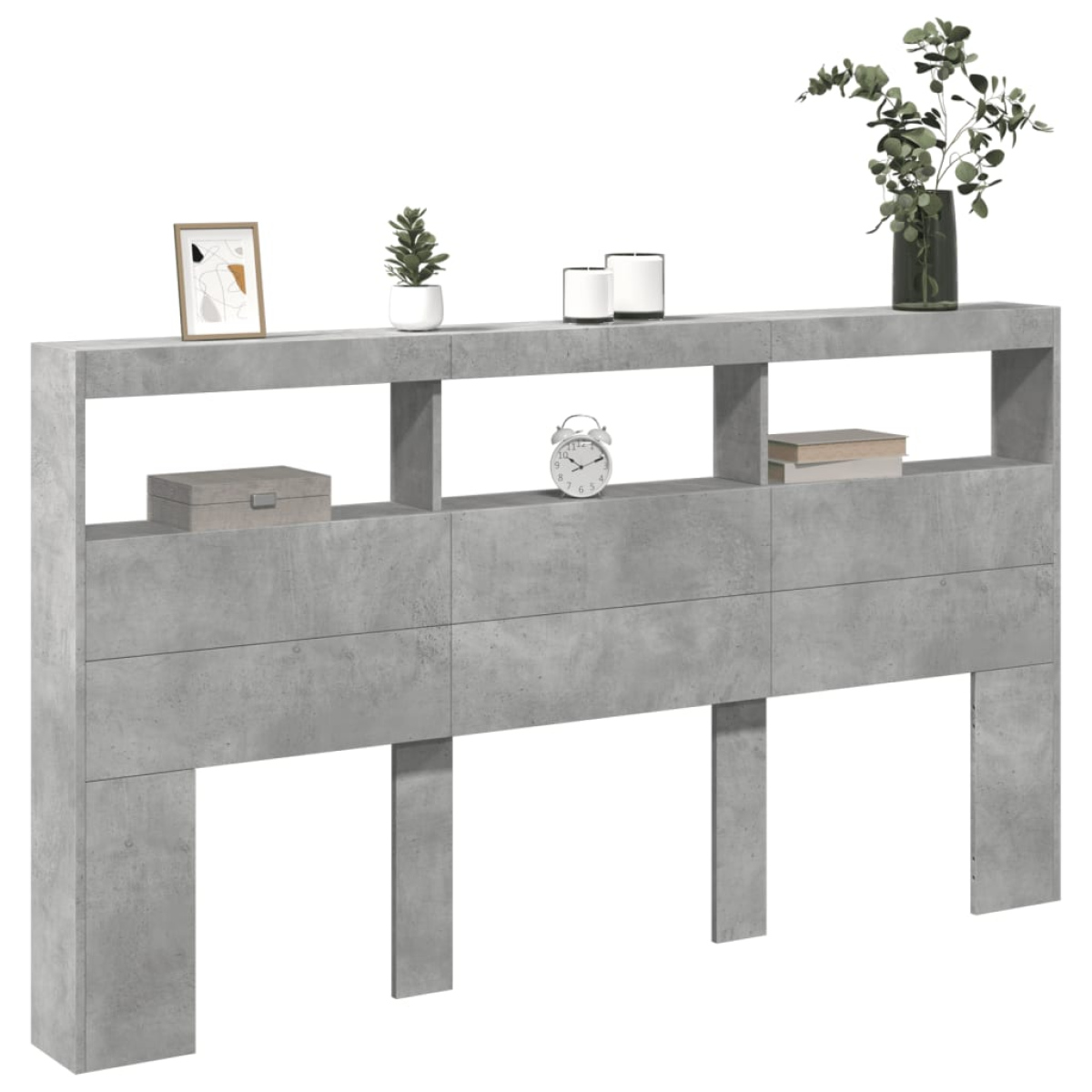 This headboard cabinet with LED, featuring a stylish design, gives your bed frame a stunning modern touch and is perfectly suitable in any bedroom. Durable material: The engineered wood is of exceptional quality with smooth surface and also features strength, stability and resistance to moisture.RGB LED lights: The bed headboard is equipped with vibrant RGB LED lights. With various customisable menus, you can effortlessly change the colour of the lights and even set them to adjust automatically. These LED lights not only enhance the contemporary look of the bed header but also add to its trendy appeal.Ample storage space: Featuring compartments and a sturdy top, the bed headboard cabinet is perfect for displaying your books, decorative items, picture frames and alarm clocks.Excellent support: The headboard for bed provides you with excellent back support when you sit up in bed to read or watch TV. Good to know:The delivery includes LED headboard only. The bed frame and mattress are not included. You can check our shop for the matching frames and mattresses.The product has a USB connector that requires a certified 5V USB power source (not included). Warning:To prevent it from tipping over, this product must be used with the provided wall attachment device.