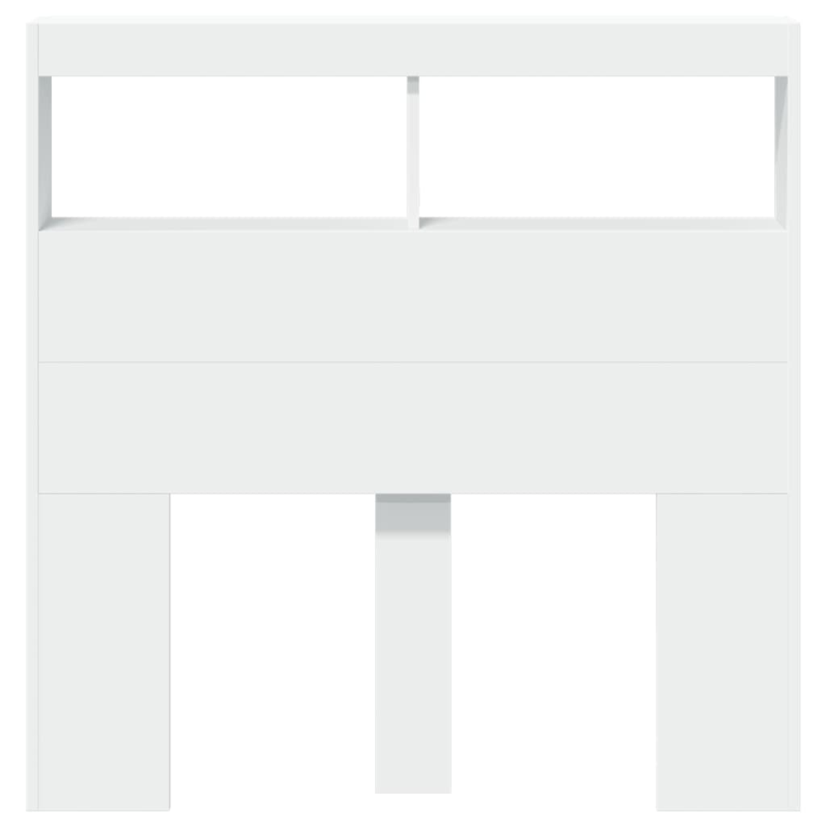 This headboard cabinet with LED, featuring a stylish design, gives your bed frame a stunning modern touch and is perfectly suitable in any bedroom. Durable material: The engineered wood is of exceptional quality with smooth surface and also features strength, stability and resistance to moisture.RGB LED lights: The bed headboard is equipped with vibrant RGB LED lights. With various customisable menus, you can effortlessly change the colour of the lights and even set them to adjust automatically. These LED lights not only enhance the contemporary look of the bed header but also add to its trendy appeal.Ample storage space: Featuring compartments and a sturdy top, the bed headboard cabinet is perfect for displaying your books, decorative items, picture frames and alarm clocks.Excellent support: The headboard for bed provides you with excellent back support when you sit up in bed to read or watch TV. Good to know:The delivery includes LED headboard only. The bed frame and mattress are not included. You can check our shop for the matching frames and mattresses.The product has a USB connector that requires a certified 5V USB power source (not included). Warning:To prevent it from tipping over, this product must be used with the provided wall attachment device.