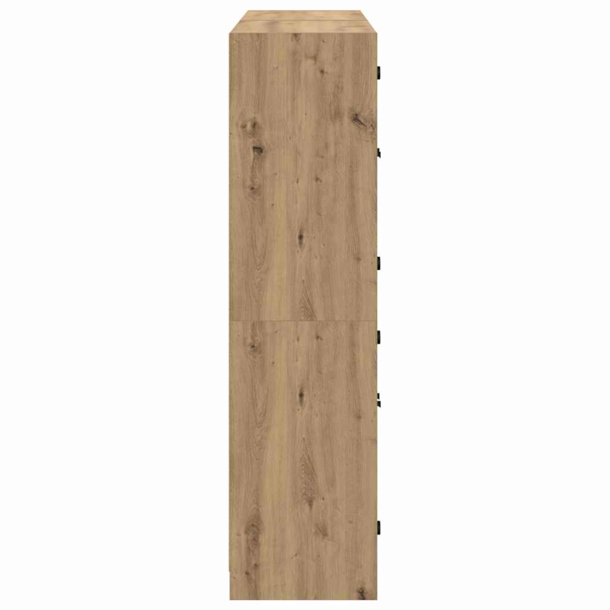 This sideboard seamlessly blends modern design with practical functionality, making it a versatile addition to any living room. Constructed from engineered wood, this sideboard boasts a sleek and minimalist aesthetic, emphasizing clean lines and a matte finish that complements different decor styles. Its transparent PVC doors provide a glimpse of the organized beauty within, while its rectangular shape ensures it fits comfortably against a wall, serving as both a storage solution and a decorative piece. Materials: The highboard showcases the durability and elegance of engineered wood, offering a matte finish that enhances its modern appeal. This choice of material ensures longevity and resistance to daily wear, making it a staple in contemporary homes that value aesthetic integrity and practical efficiency. Included Components: This sideboard features transparent PVC doors, metal knobs with a matte finish for a touch of sophistication, and engineered wood shelves. These components come together to create a cohesive and functional storage unit perfect for organizing living room essentials. Features /Function /Design: With board shelves that maximize storage capacity, this sideboard is both functional and aesthetically appealing. The transparent doors allow easy viewing of contents, adding a dynamic element of display, while the sturdy design caters to daily use without compromising elegance. Recommended Uses: Ideal for living room spaces, this sideboard can store a diverse range of items, from books and decorative pieces to dining room essentials. Its sleek design makes it adaptable to various environments, adding style and utility to any setup. Care &Maintenance: To maintain its pristine condition, assemble according to provided instructions and avoid using harsh chemicals. This ensures its longevity and keeps its appearance striking and refined.