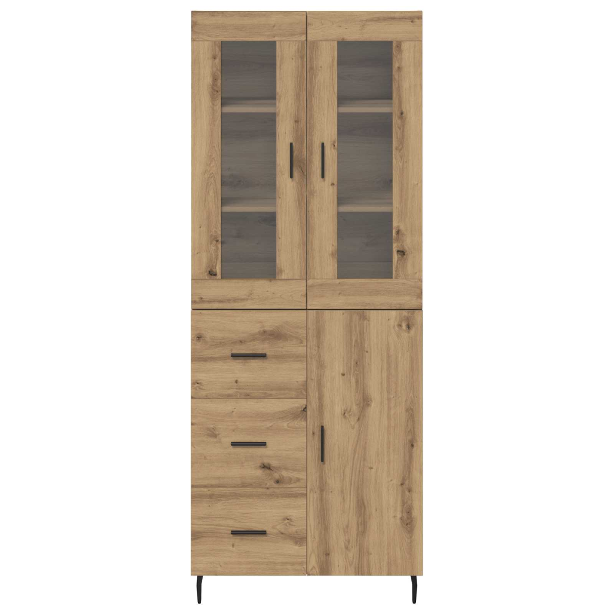 This Modern Highboard with Doors seamlessly integrates into any contemporary living or dining room, offering both style and functionality. Its sleek design, characterized by clean lines and minimal ornamentation, speaks to modern tastes while providing ample storage solutions. The highboard's aesthetic is sophisticated yet understated, allowing it to complement a variety of interior styles and personal tastes. With its streamlined silhouette, the highboard serves as both a practical storage unit and a focal point of modern design in any room. Durable Engineered Wood: Crafted from engineered wood, known for its strength and resilience, this highboard promises longevity and consistent functionality. The wood's abrasion-resistant feature ensures it continues to look polished even with regular use, providing the user with peace of mind and a reliably sturdy storage solution that withstands wear and tear over time. Functional Components: With distinctive tapered iron legs and bar-style handles, the highboard ensures stability and ease of use. The combination of hinge doors and board shelves offers an organized storage system, where items can be neatly arranged and easily accessed. Each component has been selected to enhance usability, making daily interactions efficient and hassle-free. Modern Layout: The highboard features a rectangular shape and a sleek frame offering a smooth, seamless surface. Its minimalist style seamlessly complements the décor of contemporary spaces, adding a touch of sophistication and elegance, while maintaining practicality and the necessary balance between design and use. Wide Applicability: Ideal for living rooms and dining rooms, the highboard adapts to various environments, suiting different decorative concepts and room functionalities. Whether storing dining essentials or displaying keepsakes, it caters to a wide array of storage needs. Guided Assembly: Assembly requires two people and basic tools like a screwdriver and drill, with provided instructions guiding the process. Tall furniture should be secured to prevent tipping, ensuring safety and peace of mind in your home environment, while its engineered layout assures precision in the fit of all parts.