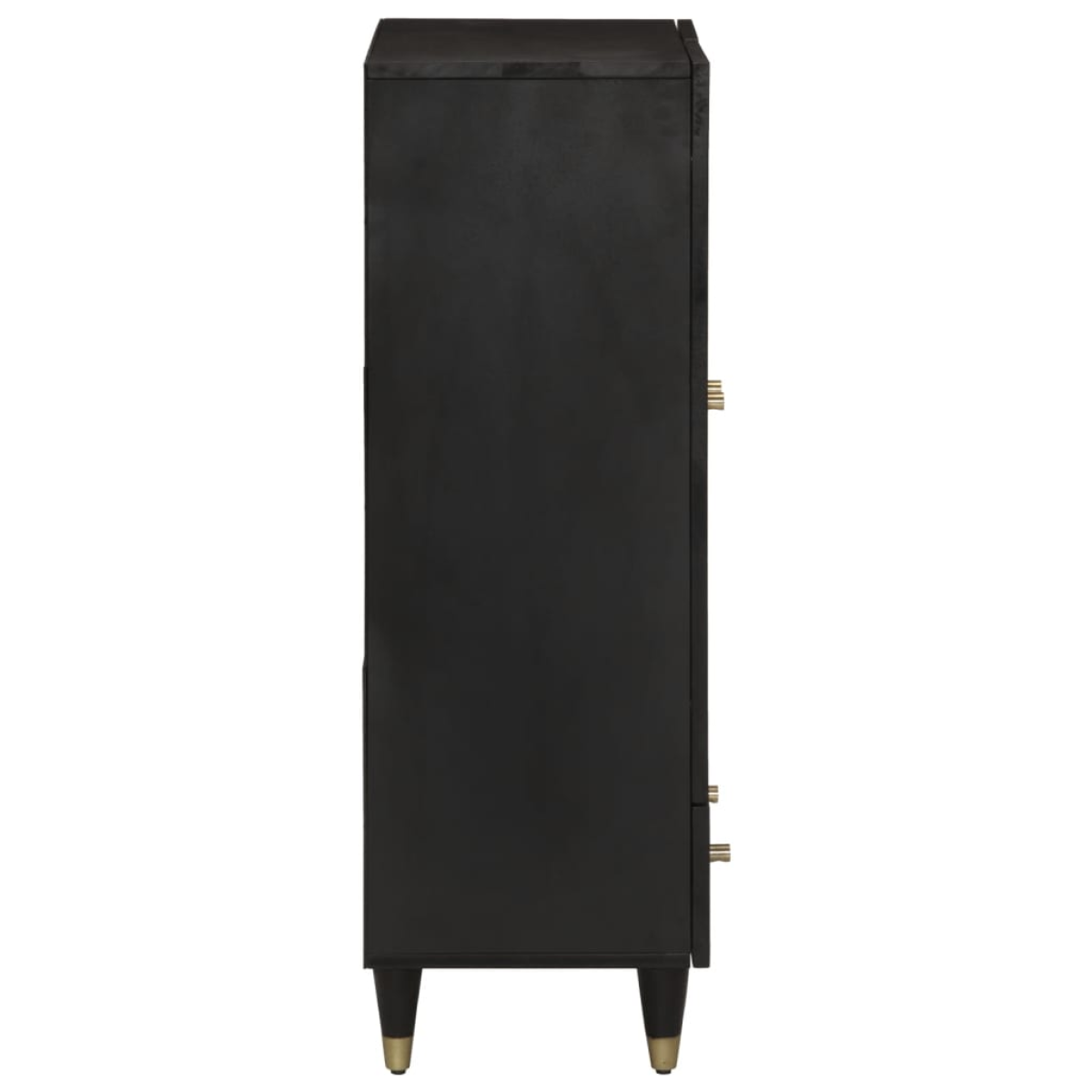This classic highboard is meant to make a decorative and practical addition to your home. Solid mango wood: Solid mango wood is a strong, tropical hardwood that makes sturdy furniture. Its beautiful wood grains make every piece of furniture slightly different from the next. Made of solid mango wood, the cabinet is durable and stable.Ample storage space: The sideboard provides ample storage space for keeping your various daily essentials well-organised and within easy reach.Practical door: Keep your space clutter-free by hiding small essentials behind the doors of the side cabinet.Wooden feet: The wooden feet give the product a natural and pleasant look while ensuring stability. It can blend well with any interior decor.Hand-carved design: This storage cabinet with hand-carved patterns brings the luxury of elegant charm to your interior, being the focal point of your room. Good to know:Each item is unique with variations in colours and grains. The delivery is random, ensuring the exclusivity and individuality of your product. Warning:To prevent it from tipping over, this product must be used with the provided wall attachment device.