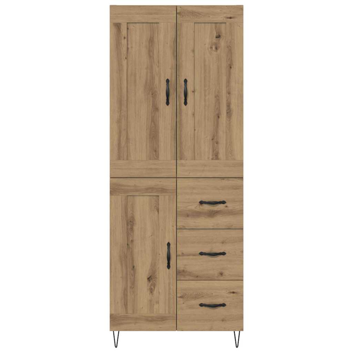This Wooden Highboard blends contemporary style with practical storage solutions, designed for modern homes seeking simplicity and functionality. Perfect for urban settings, it features a sleek rectangular shape that seamlessly fits into any dining or living space, offering a balanced and unobtrusive look. The engineered wood construction results in a smooth surface, combining durability with an elegant design, making it an ideal fit for minimalist interiors. Materials: The highboard is crafted from high-quality engineered wood, offering a smooth finish that is both robust and aesthetically pleasing. This material is selected for its durability, ensuring the sideboard withstands daily use and maintains its appearance over time. The finish is easy to maintain, requiring minimal effort to keep it looking new, which greatly benefits users seeking long-lasting solutions. Included Components: The highboard features sturdy metal legs designed in a stylish hairpin style, providing a modern touch with a functional purpose. The legs offer stable support while enhancing the piece’s contemporary aesthetic, making it suitable for any modern household aiming for a blend of style and utility. Design Features: Its ample storage capacity is perfect for organizing dining essentials, books, or decorative items. The sideboard's design focuses on both accessibility and aesthetics, making it an attractive centerpiece for any room. Its simple yet effective structure optimizes space, promoting an organized and clutter-free environment. Recommended Uses: Ideally placed in the dining or kitchen areas, the highboard serves various purposes—from storing crockery and cutlery to acting as a display unit for treasured items. Its design allows it to adapt to different settings, harmonizing with existing décor while providing valuable storage options. Care &Maintenance: To preserve its sophisticated look, clean the highboard with a dry cloth after use. Avoid harsh chemicals and abrasives that might damage the finish. For safety, secure the furniture to the wall to prevent tipping, ensuring stability even in busy homes.
