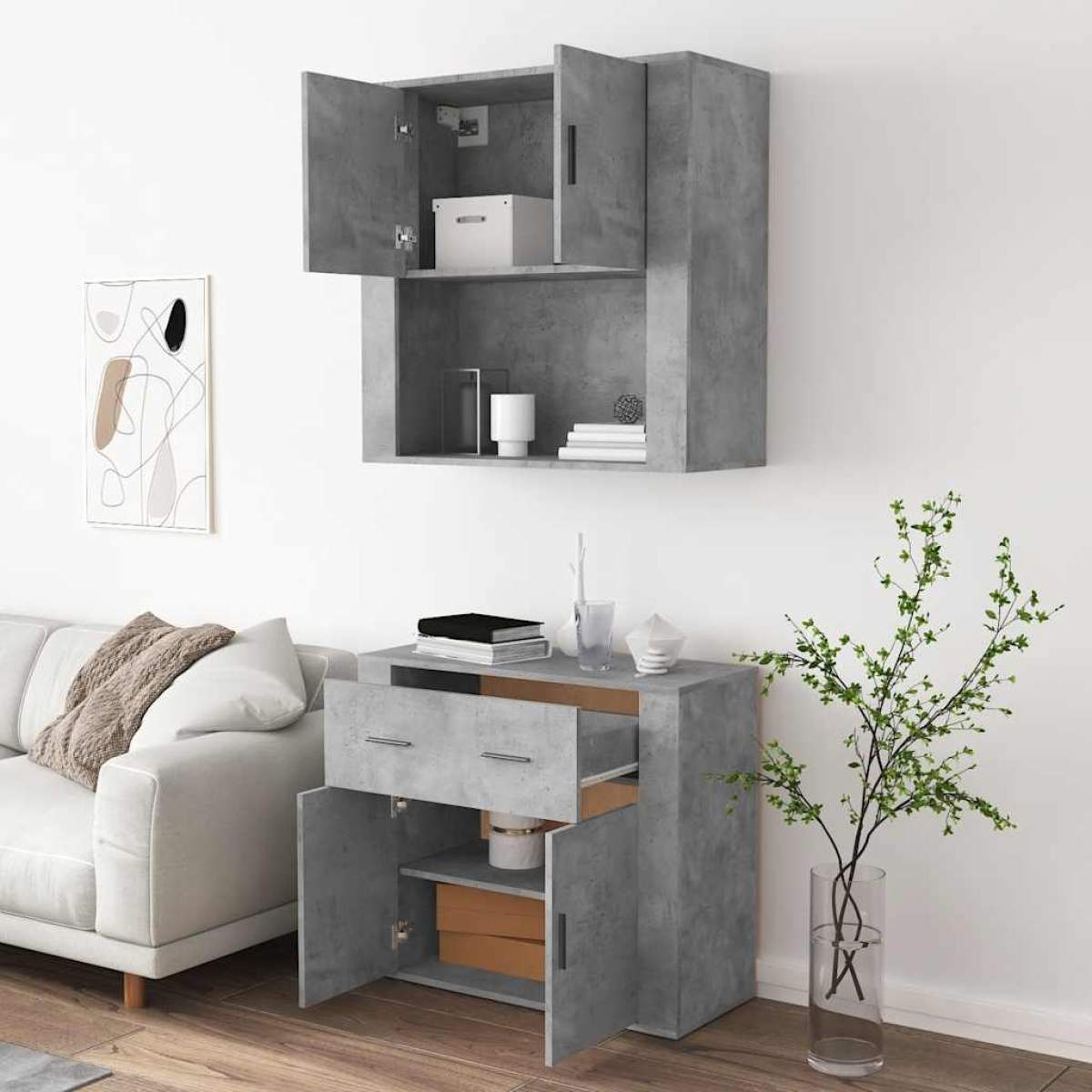 Are you hunting for a stylish highboard? This highboard adds a unique charm to your existing interior! Durable material: The engineered wood is of exceptional quality with a smooth surface and features strength, stability and resistance to moisture.Ample storage space: The sideboard offers ample storage space for keeping your various daily essentials well organised and within easy reach.Wall-mounted function: The storage cabinet can be wall-mounted on the top of the sideboard to create a highboard, which saves floor space. That way, you can maximise your living space and keep the area clean and tidy. Good to know:To make assembly as easy as possible, each product is delivered with a manual.Screws and plugs for inside the wall are not included. We advise to find and use screws and plugs suitable specifically for your walls. If you're not sure, you can consult with a professional. Please read and follow each step of the instructions. Warning:To prevent it being overturned, this product must be used with the provided wall attachment device.