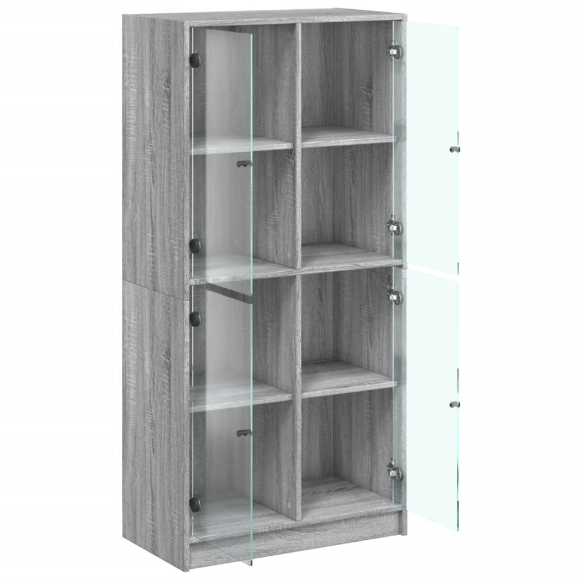 This highboard provides an ideal solution for organising your books and will add a touch of modern charm to your interior. Durable and sturdy material: The engineered wood is of exceptional quality with smooth surface and also features strength, stability and resistance to moisture.Ample storage space: The side cabinet offers ample storage space for keeping your collection of books, magazines, and documents in good order.Stable and sturdy top: The top of the tall storage cabinet is perfect for displaying your decorative items, picture frames, and potted plants.Practical design: Keep your essentials free from dust by hiding them behind doors. In addition, the black handles make it easy to open the tall cabinet. Warning:To prevent it from tipping over, this product must be used with the provided wall attachment device.