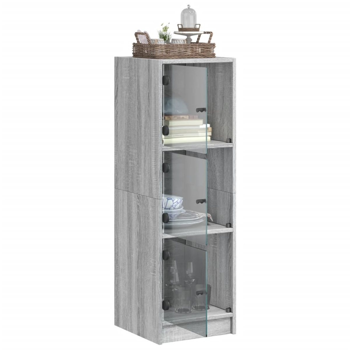 Are you hunting for a stylish highboard? This highboard adds an elegant charm to your existing interior! Durable material: The engineered wood is of exceptional quality with a smooth surface and features strength, stability and resistance to moisture.Ample storage space: The cabinet provides ample storage space for keeping your various daily essentials well-organised and within easy reach.Practical glass doors: Keep your space clutter-free by hiding small essentials behind the doors of the cupboard. In addition, the glass doors allow you to see inside the storage cabinet to display items beautifully. Good to know:To prevent it being overturned, this product must be used with the provided wall attachment device.