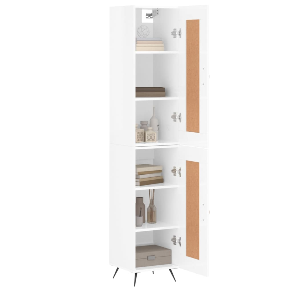 Are you hunting for a stylish highboard? This highboard adds an elegant charm to your existing interior! Durable material: The engineered wood is of exceptional quality with a smooth surface and features strength, stability and resistance to moisture. Made of engineered wood, the cabinet is sturdy and durable.Ample storage space: The side cabinet provides ample storage space for keeping your various daily essentials well organised and within easy reach.Practical doors: Keep your space clutter-free by hiding small essentials behind the doors of the tall cabinet.Metal feet: The metal feet add a calm style to your interior while ensuring stability. Warning:To prevent it being overturned, this product must be used with the provided wall attachment device. Good to know:Screws and plugs for inside the wall are not included. We advise to find and use screws and plugs suitable specifically for your walls. If you're not sure, you can consult with a professional. Please read and follow each step of the instructions.