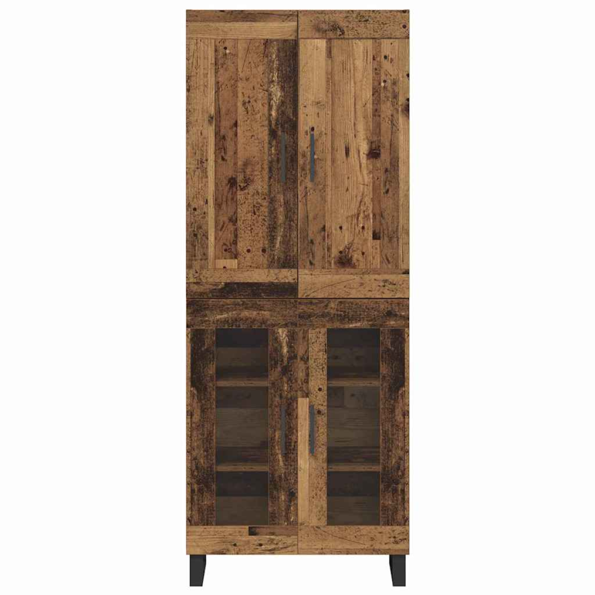 This Modern Highboard brings a contemporary flair to any dining or living room space. Designed with simplicity and functionality in mind, it combines sleek, clean lines with robust construction, making it an ideal solution for modern living. The highboard features board shelves and hinge doors, offering ample storage for various items, from dinnerware in a dining room to decorative pieces in a living room. This piece's visual appeal lies in its minimalist style, with black metal handles and square legs that perfectly complement its rectangular shape. Quality Components: The highboard boasts edge-finished engineered wood, contributing to its steady frame and overall durability. Featuring a refined finish, the wood provides both aesthetic appeal and stable support for all shelving needs. Functional Storage: Equipped with board shelves, this highboard accommodates versatile storage needs, whether for storing cutlery, linens, or decorative pieces. Its hinge doors ensure easy access, adding to its functional design. Sleek Handles: Long, straight metal bars serve as handles, offering an elegant touch while maintaining a contemporary appearance. These handles provide a reliable grip, enhancing both the usability and sleek look of the highboard. Robust Feel: Supported by square metal legs, this highboard maintains sturdy positioning, reducing the potential for wobbling. These legs contribute to a modern look, allowing the board to blend seamlessly into various interior designs. Effortless Assembly: Assembly requires two people and a screwdriver, ensuring a straightforward setup process. Delivered in parts that fit together smoothly, the highboard provides an engaging assembly experience for home improvement enthusiasts.
