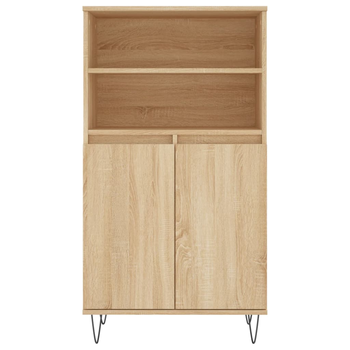 Are you hunting for a stylish highboard? This highboard adds an industrial charm to your existing interior! Sturdy material: The engineered wood is of exceptional quality with smooth surface and also features strength, stability and resistance to moisture.Ample storage space: The sideboard with 6 compartments offers ample storage space for keeping your various daily essentials well-organised and within easy reach.Practical doors: Keep your essentials free from dust by hiding them behind the doors of the cabinet.Sturdy top: You can also place your favourite photos, decorations or flowers on top of this storage board to enrich your life.Metal feet: The metal feet add a modern and calm style to your interior while ensuring stability. Warning:To prevent it being overturned, this product must be used with the provided wall attachment device.