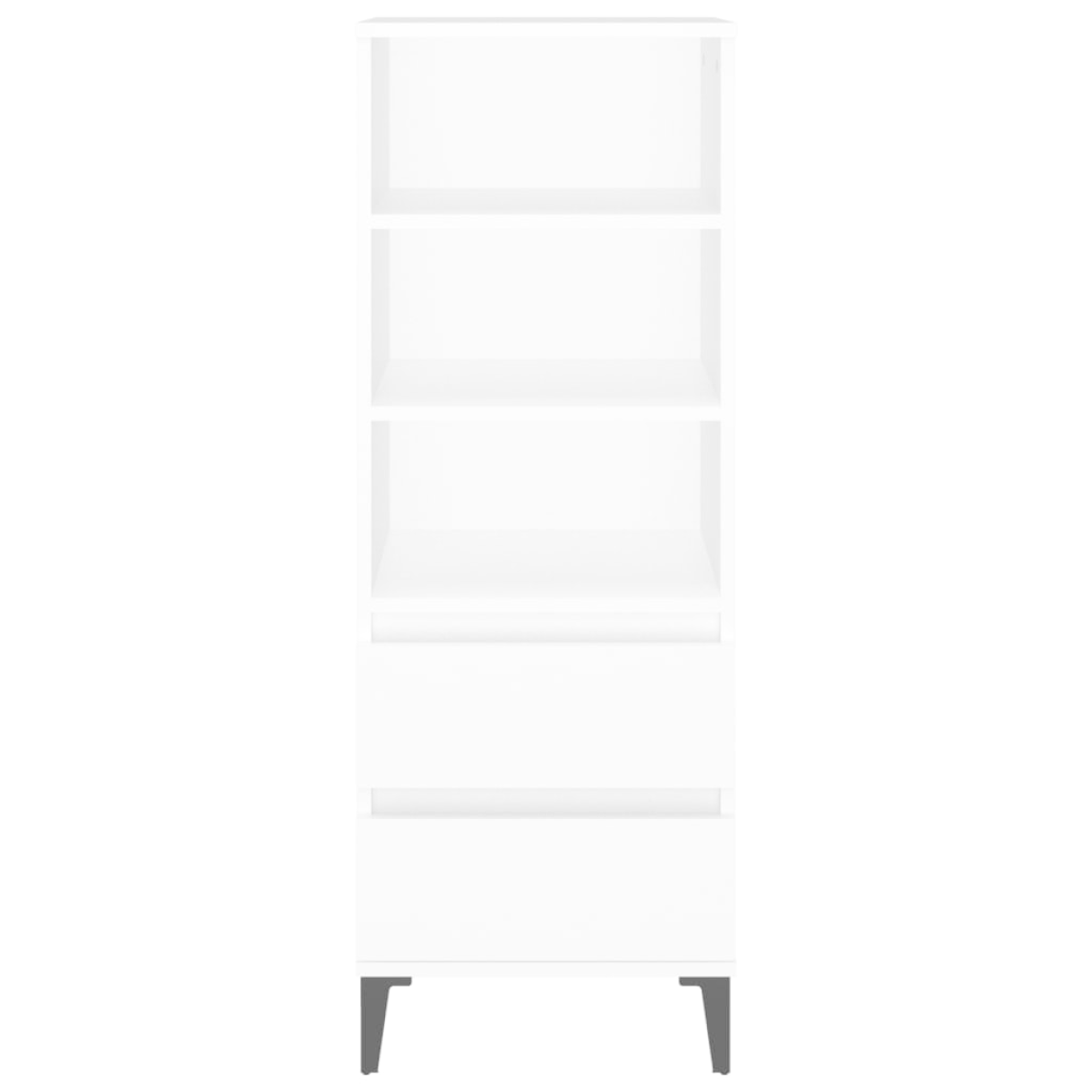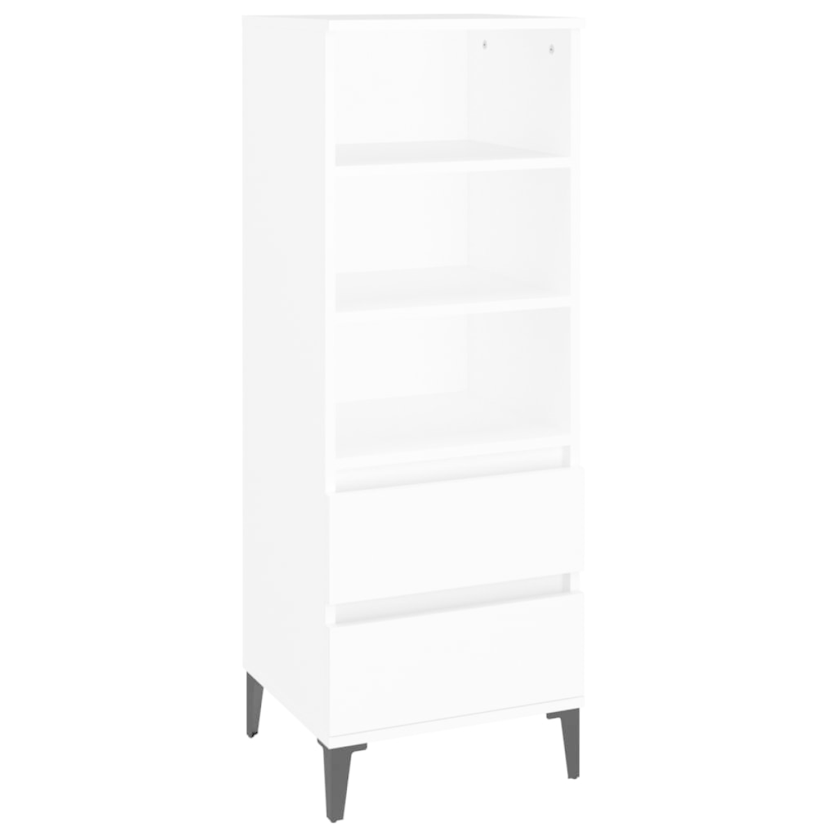This classic highboard is meant to make a decorative and practical addition to your home. Durable material: This sideboard is made of engineered wood. The engineered wood is of exceptional quality with smooth surface and also features strength, stability, and resistance to moisture.Stable matel feet: The metal feet of the side cabinet add an industrial and calm style to your interior while ensuring stability.Ample storage space: The cabinet has 3 open shelves and 2 drawers, providing ample storage space for keeping your various daily essentials well-organised and within easy reach.Sturdy top: You can also place your favourite photos, decorations or flowers on top of this storage cabinet to enrich your life. Warning:In order to prevent overturning, this product must be used with the wall attachment device provided. Note:Each product comes with an assembly manual in the box for easy assembly.