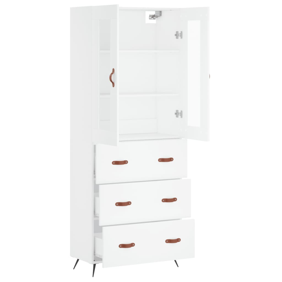 Are you hunting for a stylish highboard? This highboard adds an elegant charm to your existing interior! Durable material: The engineered wood is of exceptional quality with a smooth surface and features strength, stability and resistance to moisture.Ample storage space: The cabinet provides ample storage space for keeping your various daily essentials well-organised and within easy reach.Metal feet: The metal feet add a calm style to your interior while ensuring stability. Warning:To prevent it being overturned, this product must be used with the provided wall attachment device. Good to know:Screws and plugs for inside the wall are not included. We advise to find and use screws and plugs suitable specifically for your walls. If you're not sure, you can consult with a professional. Please read and follow each step of the instructions.