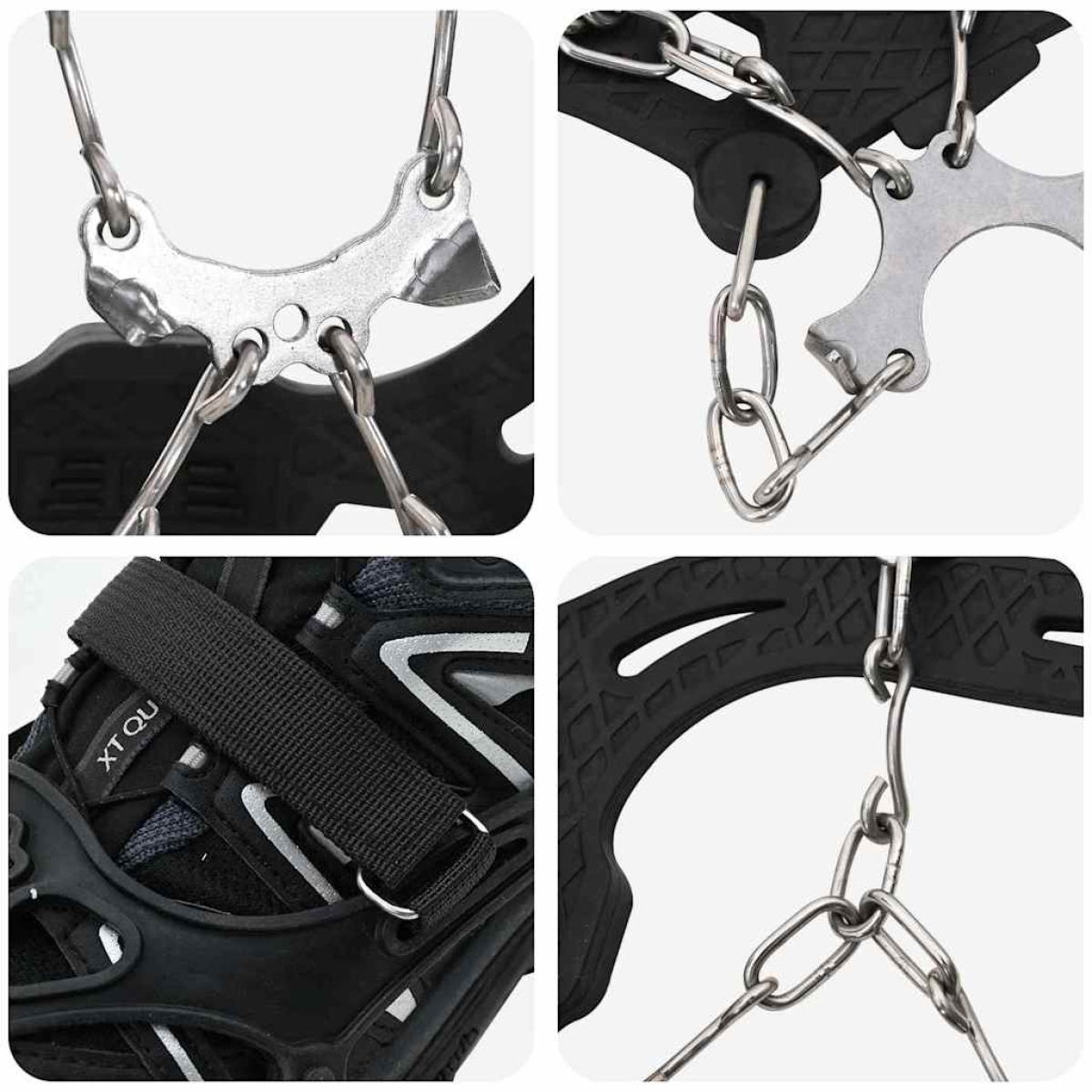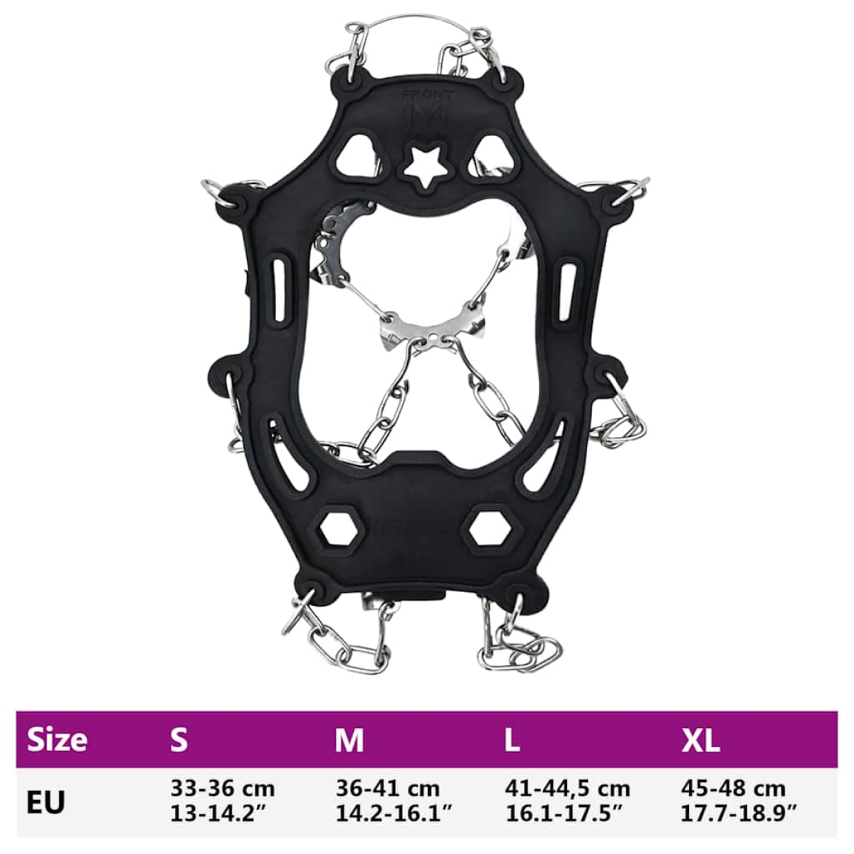 These practical ice cleats for shoes are designed to enhance traction during outdoor winter activities. Their form ensures reliable performance on icy surfaces, making them ideal for hiking on trails with compact snow or even quick urban commutes. Compact in design, these cleats come with an ergonomic structure that adapts seamlessly to most outdoor footwear for a secure fit. Whether you're ascending frosty hills or taking a winter mountain stroll, they ensure stability with ease. The cleats not only offer functionality but also exude a robust and sleek demeanor for the outdoor adventurer, dynamic trail runner, and the everyday walker. Thoughtfully constructed from thermoplastic elastomer combined with stainless steel components, these cleats are suited for extreme temperatures while providing a steady grip on slippery paths. Materials: Composed of high-grade thermoplastic elastomer and stainless steel, these materials offer consistent durability and performance. The elastomer base beautifully combines flexibility and resilience, supporting swift movements across various terrains. Meanwhile, stainless steel teeth ensure unmatched strength and long-term resistance, providing exceptional value paired with hassle-free maintenance. Included Components: Each purchase delivers a complete set of ice cleats and a convenient storage bag, allowing you to store your cleats securely when not in use. This thoughtful inclusion ensures that your package remains organized, while the bag protects the cleats from accidental damage and dirt. Features /Function /Design: Each cleat is equipped with 10 stainless steel teeth, augmenting grip efficiency on a variety of slick surfaces. Additionally, the hook-and-loop fasteners make them easy to put on and remove, enhancing user convenience, and confirming a snug fit across diverse shoe types, from hiking boots to trail runners. Recommended Uses: Primarily crafted for outdoor use, these cleats excel in crisp winter conditions, providing versatility necessary for hiking, fishing on frozen lakes, and even traversing trails paved with snow. Their robust design ensures unwavering performance across various sports-related endeavors and adventures. Care &Maintenance: Maintaining these ice cleats is straightforward and quick. After use, simply wipe them clean with a damp cloth to eliminate dirt build-up. When not in use, store them in their provided bag to ensure they remain in pristine condition for the next outing. Through this minimal yet effective routine, your ice cleats will stay in optimal condition for future excursions.