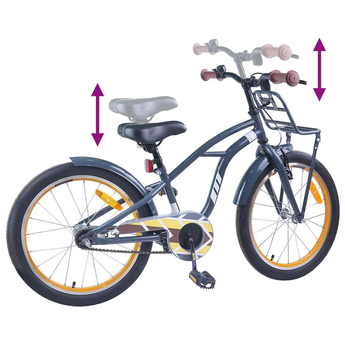 This Modern Kids Bike is an embodiment of fun and safety, designed for the young cyclist eager to explore their surroundings. Its classic appearance and robust construction make it a reliable choice for children, offering a delightful ride whether they're in the neighborhood or at a park. With its elegant design and reliable functionality, it provides both parents and children peace of mind, knowing they are well-equipped to tackle their adventures. The harmonious blend of style and practicality ensures that it not only looks good but performs exceptionally well. Children will be drawn to its inviting design while enjoying a smooth ride experience. Steel Frame and Fork: This bike features a sturdy steel frame and fork, offering superior durability and strength. The robust construction ensures a stable and secure ride, even in dynamic terrains. Steel's resilient nature aids in absorbing shocks from uneven paths, offering a balanced and seamless riding experience. Classic Brake Lever: Equipped with a classic brake system, this bike promises safe and timely stops. This braking setup is particularly favorable for young riders, enhancing their confidence and control over the bicycle. The dependable mechanism is engineered for easy handling. Anatomical Saddle: The bike's anatomical saddle is designed to provide excellent comfort and support. Its unique shape facilitates a natural seating position, easing prolonged rides and reducing discomfort. This thoughtful addition caters specifically to developing children who require both functionality and comfort. Low Spanning Frame: With its low spanning frame design, getting on and off the bike remains hassle-free for youngsters. This design offers added safety, preventing potential falls and ensuring that even the most spirited riders can maneuver with ease and confidence. Mudguard Protection: The incorporated mudguards shield riders from puddle splashes and dirt, maintaining cleanliness and adding a layer of convenience. These mudguards effectively minimize cleanup efforts after adventurous explorations, allowing more riding pleasure for children and fewer worries for parents.