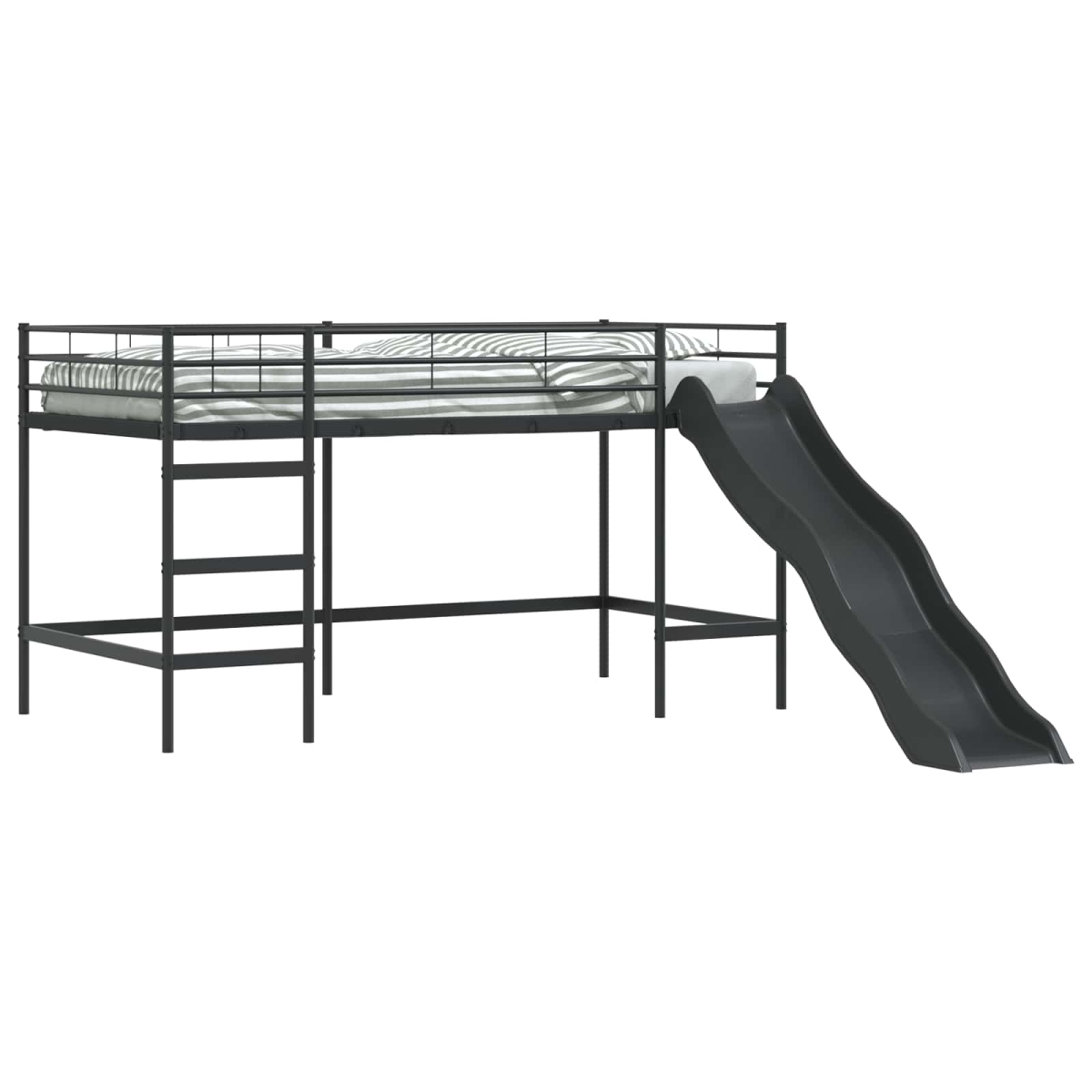The Kids'Loft Bed Frame with Slide is a captivating blend of style, functionality, and excitement, perfect for children and teens. It transforms any room with its sleek rectangular structure and smooth, matte finish, offering a playful yet modern touch. This loft bed offers a unique way to elevate a child's living space, featuring a built-in slide that transforms bedtime into an adventure. Its smooth surface and clean design reflect a contemporary style that's suitable for any bedroom decor. Modern Steel Construction Built using top-quality steel, this bed frame is designed for enduring durability and robust support. The metal construction offers a sleek, modern finish, making it a stylish choice for children's rooms. Engaging Slide Feature Incorporating an innovative slide, the frame assists in creating a playful environment, adding an element of fun to everyday use. This feature transforms descent from the bed into an exciting experience for children. Breathable Matte Finish The non-reflective matte finish enhances the bed's visual appeal, offering a sophisticated look while providing ease of cleaning and maintenance. It's perfectly combined with a breathable, airy design that ensures comfort throughout its use. Space-Saving Structure Optimized for tight spaces, this loft bed pits functionality against aesthetics with its compact design, making it ideal for bedrooms where area-saving is crucial. Its elevation creates a room for an imaginative play area beneath. User-Friendly Assembly Designed with simplicity in mind, this bed requires assembly using standard household tools like a screwdriver, as guided by detailed instructions. This ensures ease of setup without hassle, making it ideal for busy households.