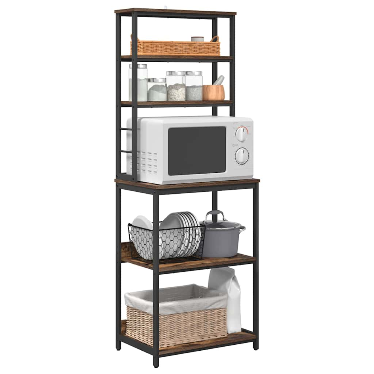 The Industrial Kitchen Shelf is a versatile freestanding storage solution designed to sharpen the distinct aesthetics of kitchens, pantries, or dining rooms. With its robust steel frame and engineered wood shelves, it embodies the raw charm of industrial styling while meeting the practical needs of modern homes. This rectangular shelving unit is perfect for those who appreciate the blend of form and function, offering ample space for everything from kitchen essentials to decorative items. The design elegantly suits urban lofts and industrial-inspired spaces. Materials: Featuring engineered wood shelves complemented by a sturdy steel frame, this shelf showcases resilience and industrial charm. The engineered wood is chosen for its abrasion resistance, ensuring longevity despite frequent use. The combination of these materials creates a piece both functional and visually appealing, adapting seamlessly to a variety of home settings. Included Components: The unit comprises multiple board shelves supported by square steel legs, providing reliability and ample storage. The levelers ensure the unit stands firm on uneven surfaces, easily stabilizing without additional support. This thoughtful design accommodates various items, from cookware to pantry supplies, making it a valuable addition to any storage setup. Features /Function /Design: The shelves boast easy maintenance, requiring just a dry cloth for cleaning. Their robust structure supports substantial weight, providing storage for a wide range of kitchenware or decorative items. Equal parts functional and stylish, the freestanding design aligns with urban spaces, adding an industrial edge to your home aesthetics. Recommended Uses: Perfect for kitchens and dining spaces, this shelf is adaptable for storing culinary essentials or fashionable vignettes. Its versatile design ensures it blends with various environments, offering practical storage without compromising style. Ideal for kitchens, pantries, or dining areas seeking both aesthetics and functionality. Care &Maintenance: Maintain the shelf's pristine condition with simple care routines. A quick wipe with a dry cloth retains its finish, while stronger chemicals should be avoided. This ensures that the shelf keeps looking fresh and maintains its structural integrity, making it a dependable storage solution for years to come.
