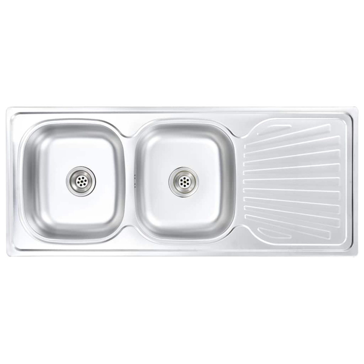 vidaXL Kitchen Sink Double Basin with Strainer & Trap Stainless Steel