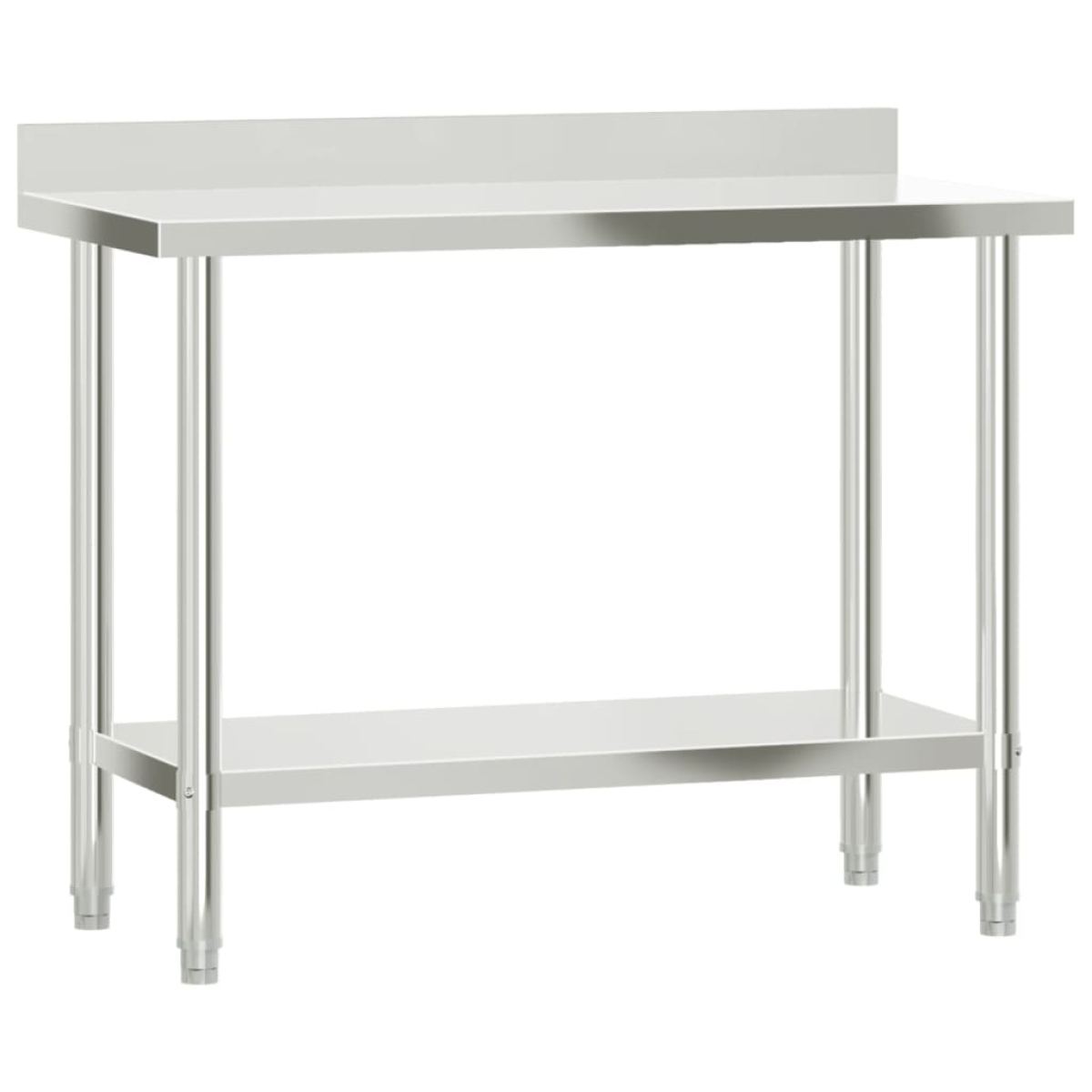 This kitchen work table is perfect for food prep and storage and is ideal for a kitchen bar, restaurant, school, as well as other commercial places. Durable and stable construction: The work table is made of stainless steel, providing resistance to corrosion and rust for years of reliable use. The smooth surface is easy to clean and maintain, ensuring a hygienic food preparation area.Ample workplace: The stainless steel prep table is designed with a bottom shelf and a overshelf for customised storage space, providing ample storage space for your microwave oven, kitchen utensils, or any other tools you may need.Practical backsplash: The backslash effectively protects your walls from scratches and dirty water, ensuring a clean and tidy kitchen.Adjustable feet: The adjustable feet with a non-slip design ensure the kitchen prep table remains stable and will stay put, protecting the floor from damage. Warning:To prevent it from tipping over, this product must be used with the provided wall attachment device.