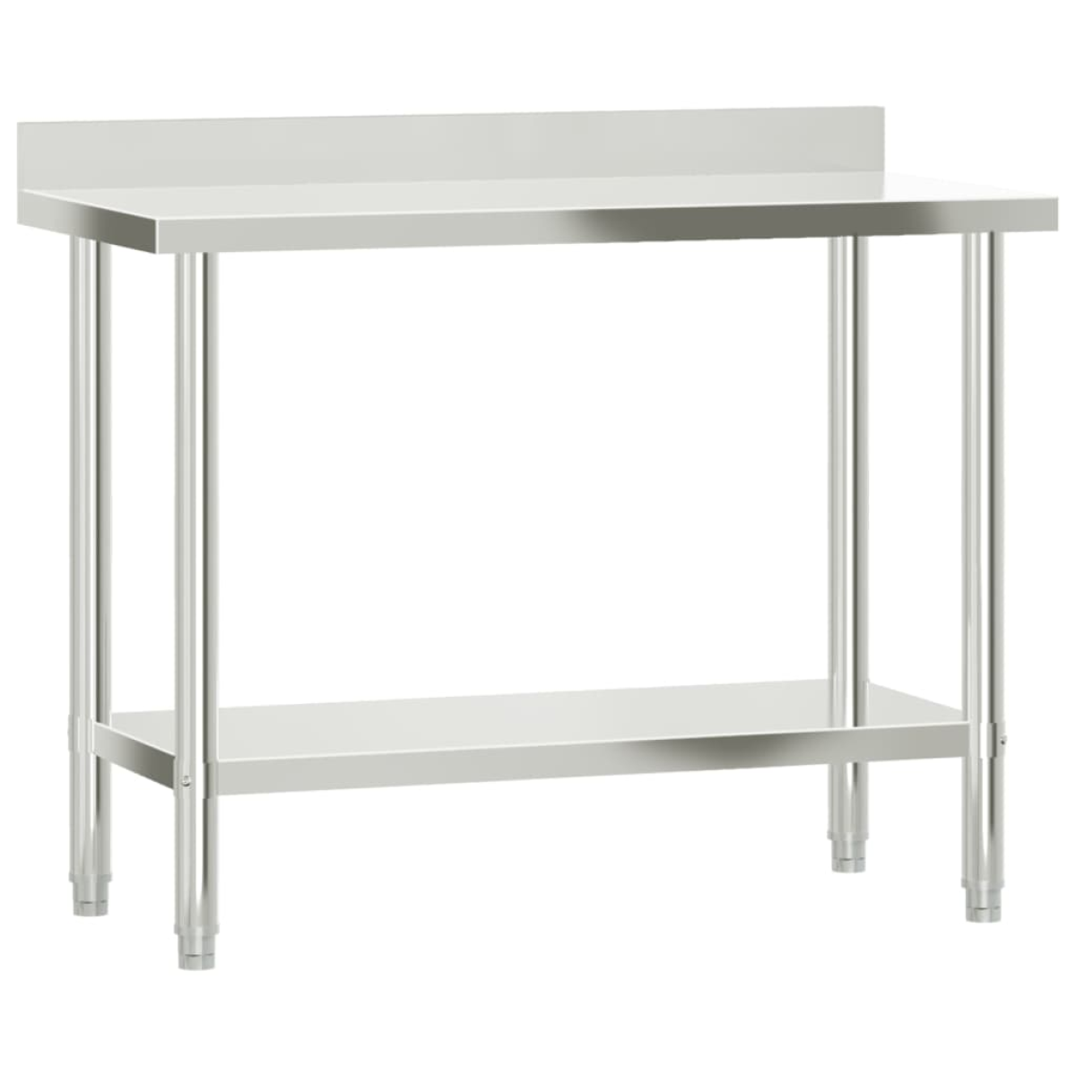 This kitchen work table is perfect for food prep and storage and is ideal for a kitchen bar, restaurant, school, as well as other commercial places. Durable and stable construction: The work table is made of stainless steel, providing resistance to corrosion and rust for years of reliable use. The smooth surface is easy to clean and maintain, ensuring a hygienic food preparation area.Ample workplace: The stainless steel prep table is designed with a bottom shelf and a 2-tier overshelf for customised storage space, providing ample storage space for your microwave oven, kitchen utensils, or any other tools you may need.Practical backsplash: The backslash effectively protects your walls from scratches and dirty water, ensuring a clean and tidy kitchen.Adjustable feet: The adjustable feet with a non-slip design ensure the kitchen prep table remains stable and will stay put, protecting the floor from damage. Warning:To prevent it from tipping over, this product must be used with the provided wall attachment device.