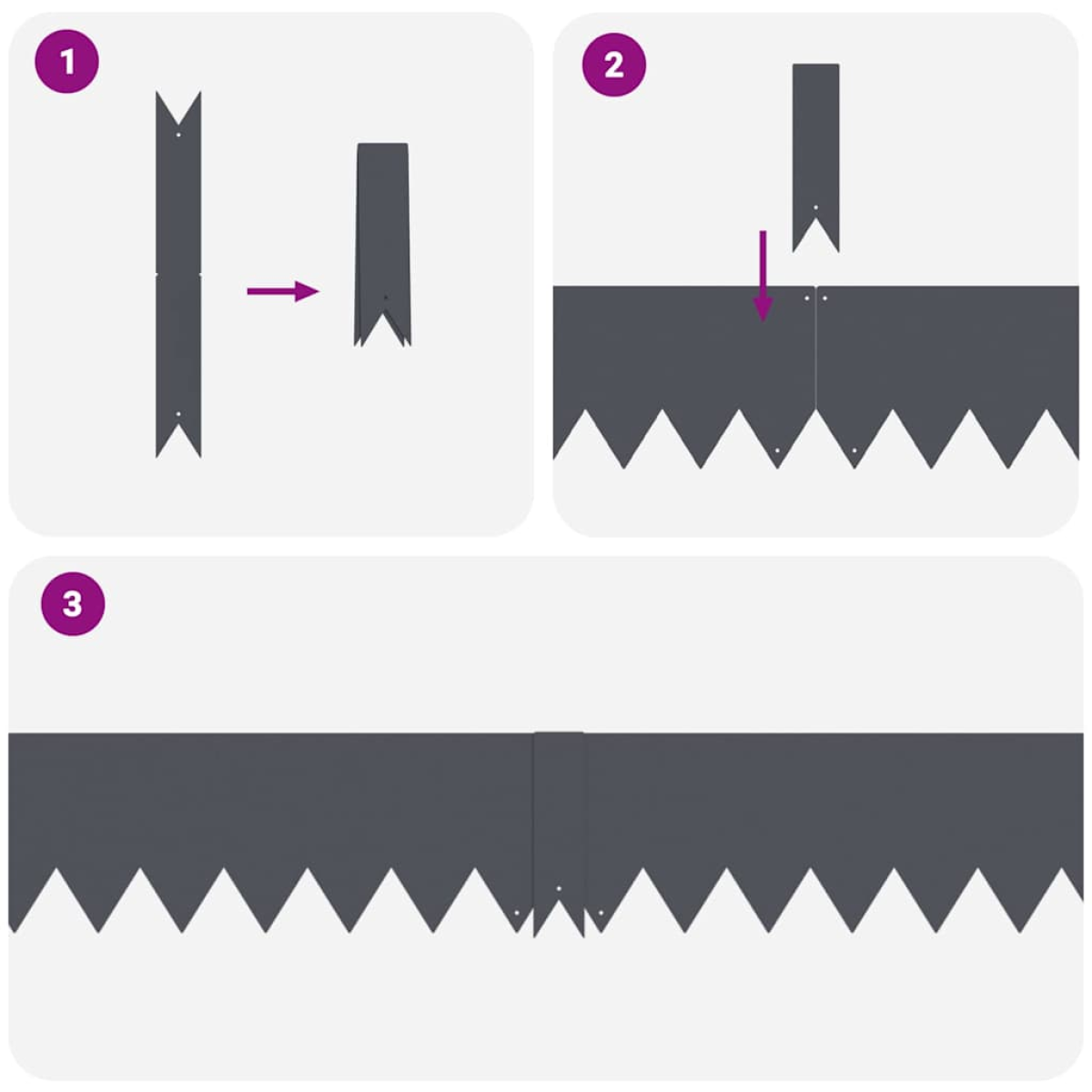 This Garden Lawn Edging offers a clean and stylish solution for defining the spaces in your outdoor area with its modern design. Ideal for gardens and terraces, it provides a clear separation between grass, flower beds, and pathways, creating an organized and aesthetically pleasing landscape. The sleek design blends seamlessly into various outdoor decor styles, enhancing the overall appearance of your garden while making maintenance easier. Sturdy Material: The lawn edging is crafted from weather-resistant material, ensuring it withstands the elements. Built to last, it maintains its structure and appearance through rain, sun, and wind, providing reliable service throughout the seasons. Modern Design: Characterized by clean lines and a minimalist aesthetic, this edging offers a contemporary look for your outdoor spaces. Its simple yet effective style adds a touch of sophistication to any garden or terrace layout. Enhanced Functionality: This edging facilitates neat separations between different areas, keeping pathways clear of encroaching grass and mulch. It offers both aesthetic and practical benefits, reducing maintenance efforts and enhancing the visual appeal of the landscape. Versatile Usage: Perfect for use along driveways, around flower beds, or bordering patio areas, this edging is adaptable to a variety of layouts and gardening styles. Its sleek design and durable nature make it suitable for both residential and commercial landscapes. Essential Installation: Installation is straightforward, requiring a hammer and assistance from two people to ensure proper alignment and stability. The setup process guarantees that the edging remains secure and functional, offering lasting organization and order to your outdoor spaces.