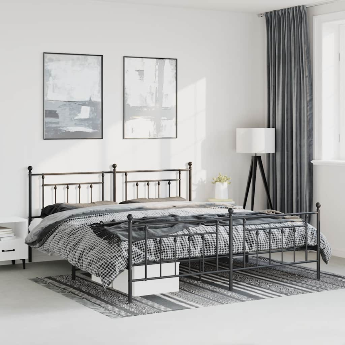 vidaXL Metal Bed Frame without Mattress with Footboard Black 183x213cm