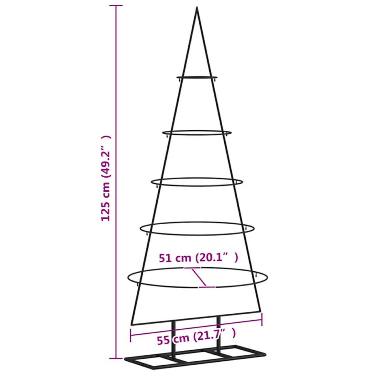 This metal Christmas tree is ideal for anyone who loves DIY decoration and is looking for Christmas trees with a modern look. DIY decoration: You have the freedom to unleash your creativity on the metal Xmas tree, where you can combine it with lightweight LED lights, fairy lights, pine branches, or other Christmas decorations to craft a one-of-a-kind, attention-grabbing decoration for your home.Sturdy construction: The Christmas decoration stand has a steel frame and is supported by a solid base for stability and sturdiness.Space-saving design: After use, you can disassemble the metal Christmas tree stand into multiple parts, and conveniently store all of them in a space-saving manner. Good to know:The delivery includes a tree frame only; decorations are not included.