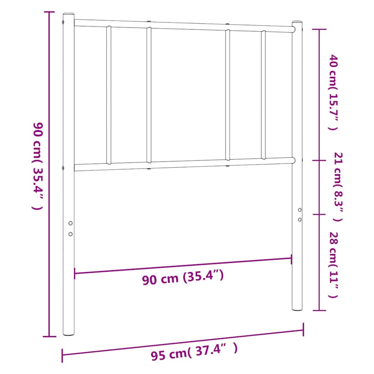 Featuring a stylish design, this classic headboard gives your bed frame a complete look and suits any bedroom. Robust metal construction: The bed header is made from powder-coated steel. Steel is an exceptionally hard and strong material and offers exceptional sturdiness and stability. The powder coating on steel creates a protective layer against wear and tear.Sturdy and stable legs: The metal legs ensure sturdiness and stability.Excellent support: The bed headboard provides you with excellent back support when you sit up in bed to read or watch TV. Good to know:The bed frame and mattress are not included in the delivery. Note:The headboards with round tubes are only suitable for beds with round tubes from our shop.
