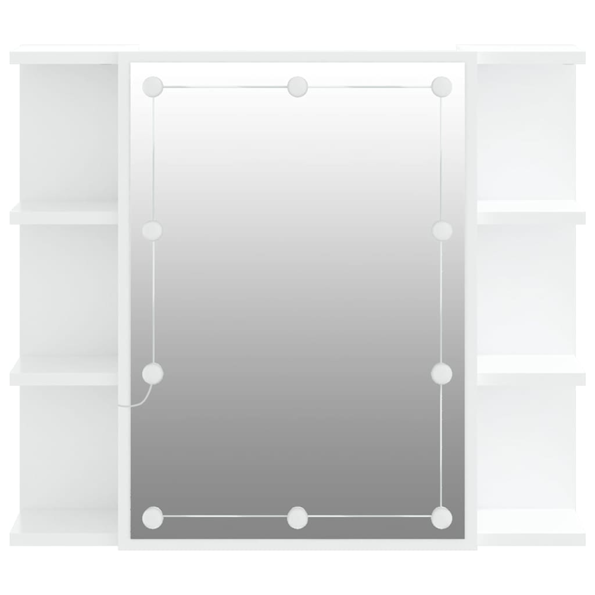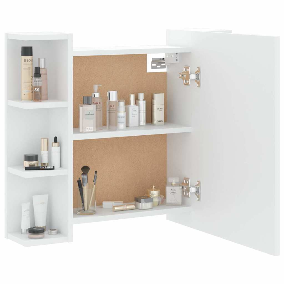 Keep your make-up essentials organised and neat with this trendy mirror cabinet with LED lights! Durable material: The engineered wood is of exceptional quality with smooth surface and also features strength, stability and resistance to moisture. Made of engineered wood, the LED mirror cabinet is easy to clean.Utility mirror: A beautiful mirror provides a view for makeup application and adds an elegant touch to the bathroom mirror cabinet.LED lights: The wall cabinet has LED bulbs, which are equipped with a USB interface, making it very convenient to use.Ample storage space: This jewellery mirror cabinet features compartments, which offer places for your items and keep everything in its place. Note:Each product comes with an assembly manual in the box for easy assembly.Screw(s) and plug(s) for inside the wall are not included. Seek and use screw(s) and plug(s) suitable for your walls. If you are uncertain, seek professional advice. Read and follow each step of the instruction carefully.