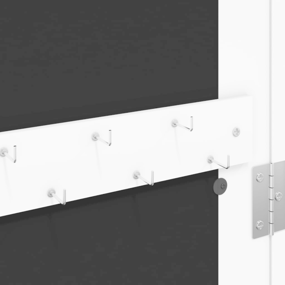 Keep your jewellery and perfumes discreetly and elegantly stored away with this stylish mirror jewellery cabinet! Durable material: The engineered wood is of exceptional quality with smooth surface and also features strength, stability and resistance to moisture. Made of engineered wood, the jewellery cabinet is easy to clean with a damp cloth. Ample storage space: The storage mirror offers plenty of hooks, hangers and shelves to keep your jewellery neatly organised and within reach.Practical mirror: With a full-length mirror, this jewellery organiser is great for getting ready and applying make-up.Considerate protection: The jewellery storage has a lockable door and comes with 2 keys to ensure the safety of your items. Also, the soft fabric cover inside not only adds elegance but also protects your beloved jewellery from scratches.Space-saving design: Hang the mirror jewellery box over the door with the included hooks or mount it on the wall to save floor space. Good to know:Screws for wall mounting are included.