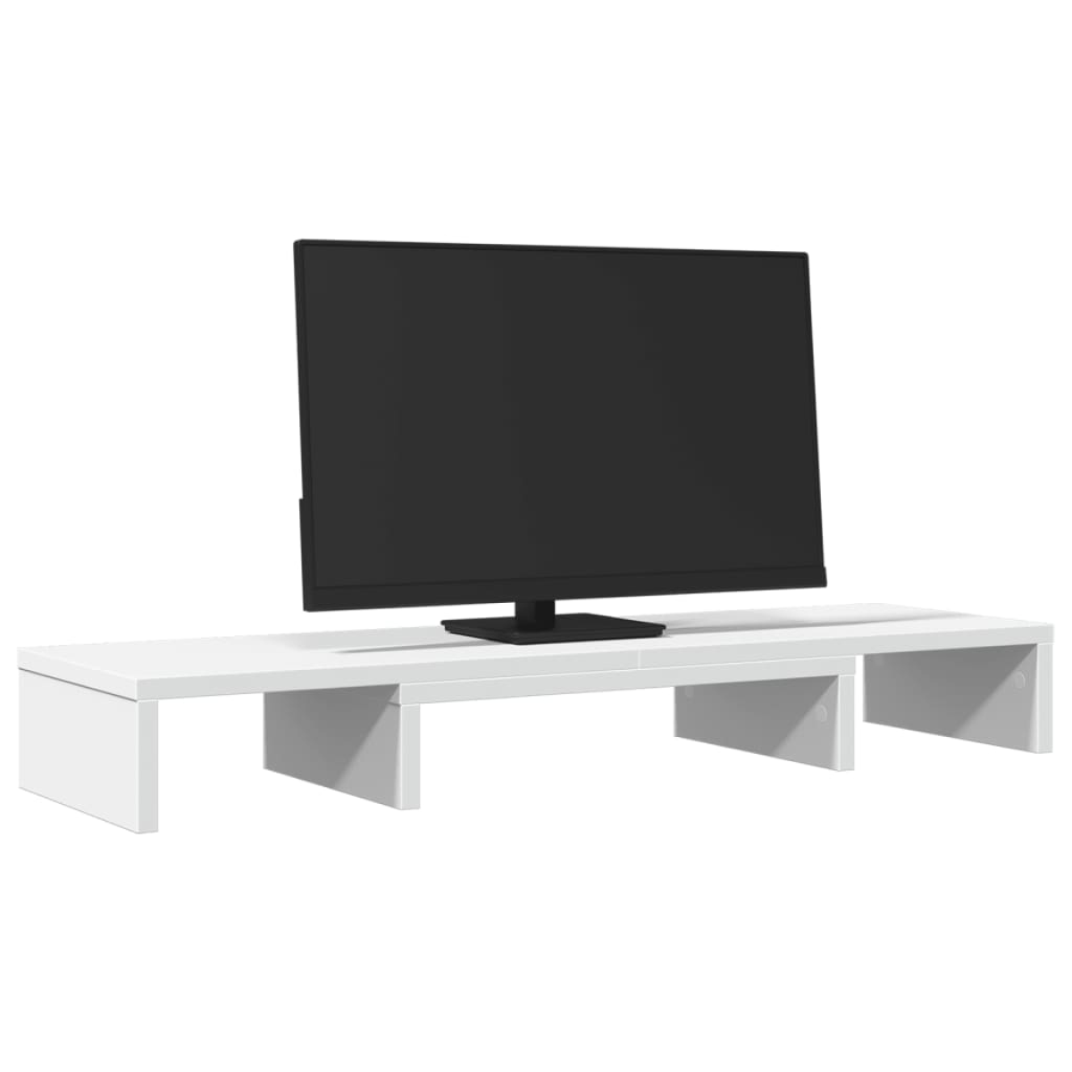 Enhance your workspace with the adjustable monitor stand for better viewing comfort and style! Stable and durable material: Engineered wood is a durable and stable material with a smooth surface that is resistant to moisture, warping, and splitting, making it a reliable choice for various projects.Customisable length: By extending the two larger monitor stands, this configuration maximizes the overall stand's length, offering a spacious platform ideally suited for two monitors.Customisable viewing angle: By adjusting the angles of the two larger stand risers, you can find the perfect viewing angle for reduced strain and increased productivity.Additional storage: The lower section includes ample storage compartments, offering generous space to neatly organize books, notebooks, keyboards, and accommodate a laptop.Easy maintenance: Thanks to its smooth surface, the dual monitor stand is easy to clean with a damp cloth and requires less maintenance.