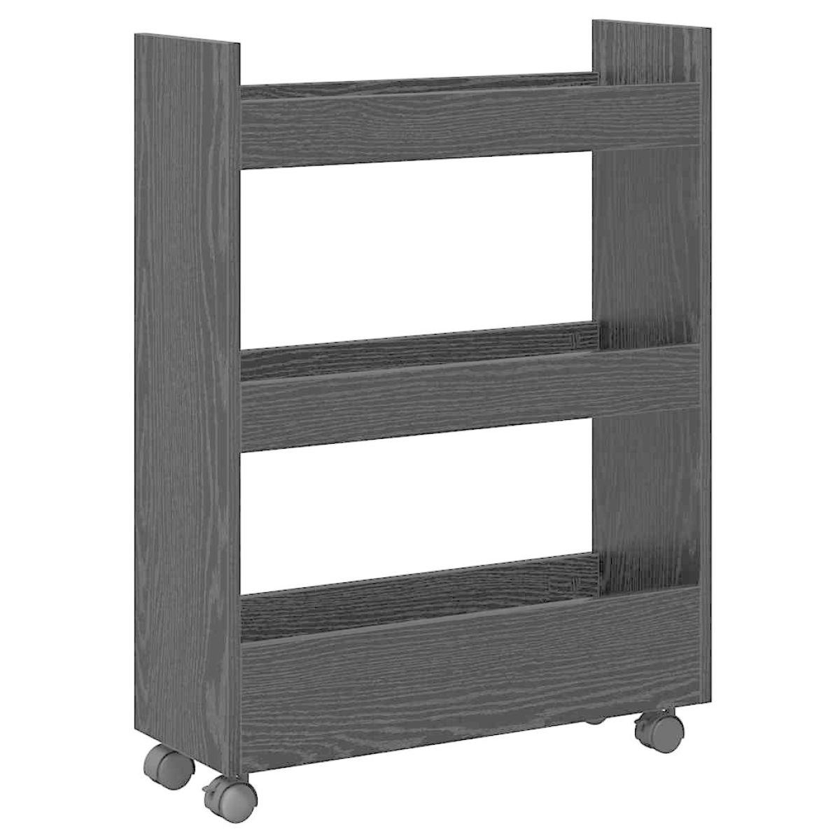 This Engineered Wood Narrow Storage Trolley is a versatile and stylish addition to any modern kitchen or utility space. Combining functionality with contemporary design, this trolley makes efficient use of space while still providing the storage capability to keep your home organized. Its narrow design makes it perfect for tight spaces or smaller apartments, and wheels provide excellent mobility for dynamic interiors. Engineered Wood: Constructed from engineered wood, this trolley showcases an attractive and sturdy rectangular design. The choice of material ensures a stable and durable structure, fit for both function and fashion in your kitchen. Wheeled Mobility: This trolley features four castors, two of which are equipped with brakes for stable positioning. This component allows you to effortlessly shift your trolley wherever it's needed, making it exceptionally handy for dynamic and adaptable environments. Installation Options: Designed for versatility, the trolley can be placed either standing or wheeled. Its adaptable fit means you can use this asset in whatever way best complements your layout, ensuring your kitchen maintains its stylish and functional appeal. Space Efficiency: With dimensions of 60 x 22 x 80 cm, it's a perfect fit for compact spaces that require smart storage solutions. Providing ample room without encroaching on valuable floor space, it is an ideal choice for small kitchens and utility rooms. Care Instructions: Keeping this trolley in pristine condition is simple—just wipe clean with a dry cloth. This low-maintenance feature ensures that style and function can be maintained without hassle.