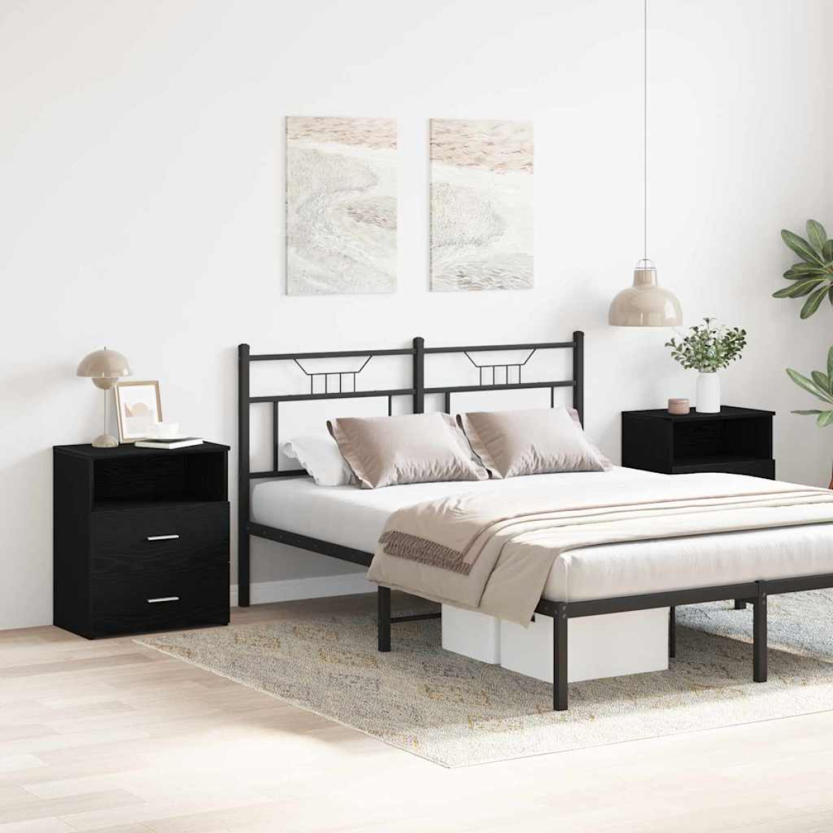 This Black Oak Bedside Table is a stylish yet practical addition to any modern bedroom. Its sleek rectangular design and smooth surface offer a contemporary vibe while providing handy storage solutions. Each table helps keep your nightstand organised—perfect for placing a lamp, alarm clock, or personal items within easy reach, making it great for both adults and teens. Ample Storage: With spacious drawers, these bedside tables give you plenty of room for your nightly essentials. The two cabinets make it easy to organise your stuff, giving you quick access to personal items while keeping things tidy. Modern Aesthetic: The stylish black oak finish and clean lines of this bedside table match modern design trends, lifting your bedroom's overall vibe and creating a cohesive look. Durable Construction: Made from top-quality engineered wood, this bedside table set is built to take daily use, making sure your furniture lasts and looks great over time. Versatile Use: Suitable for various rooms, these tables can act as bedside companions or as small storage in living areas, showcasing their adaptability anywhere. Easy Assembly: Each table comes with simple instructions, making setup a doddle. With just basic tools like a screwdriver and hammer, two people can get these bedside tables assembled in no time.