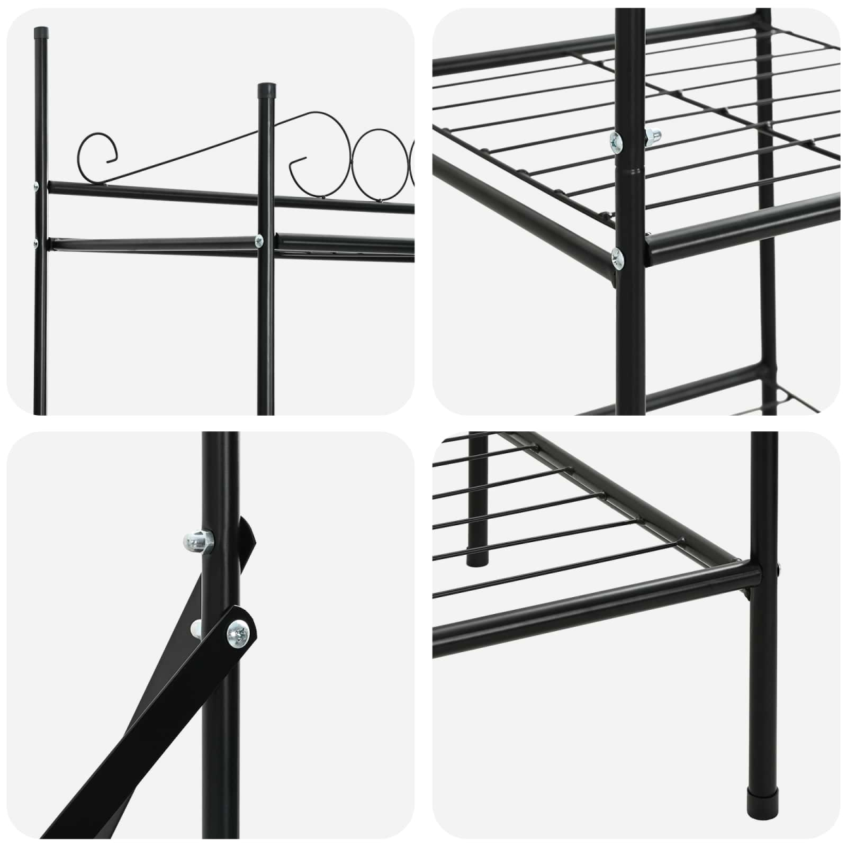 This modern open wardrobe offers a sleek storage solution for any bedroom or walk-in closet. The minimalist design features clean lines and a smooth matte finish that adds a touch of elegance to any space. Designed for maximum functionality, this wardrobe is versatile and can seamlessly blend into various interior styles, from contemporary to traditional. Multiple wire shelves provide ample storage for clothing and accessories, while the sturdy frame ensures durability. Its simplicity, combined with ample storage, makes it ideal for organizing essentials efficiently. Metal Construction: Crafted with a durable metal frame, this open wardrobe ensures longevity and stability. The frame's painted matte finish gives it a sophisticated, understated look, while being resistant to everyday wear and tear. This robust construction ensures the wardrobe stands firm even when fully loaded, making it a reliable storage solution for various items. Wire Shelves: Featuring lightweight wire shelves, this wardrobe provides excellent ventilation and easy visibility for stored items. Ideal for organizing clothes, shoes, or accessories, these shelves promote air circulation, keeping your belongings fresh. The black color adds a touch of modern elegance, complementing the minimalist design of the wardrobe. Post Legs: Equipped with sturdy post legs, this open wardrobe guarantees exceptional support and stability. These simple yet effective legs align with the wardrobe's modern aesthetic, offering solid grounding. The post legs make this unit resilient against wobbling, even when placed on uneven surfaces, ensuring consistent performance. Ample Storage: Designed to offer considerable storage space, this wardrobe accommodates various items efficiently. Whether using it in a bedroom or walk-in closet, it provides the perfect organizational setup. The open approach allows for easy access to garments, making it ideal for those who value functionality. Easy Maintenance: Maintaining this wardrobe's pristine condition is straightforward. Simply dust it regularly with a dry cloth or wipe with a damp cloth as needed, avoiding harsh chemicals to preserve its finish. This hassle-free maintenance approach ensures the wardrobe continues looking new, contributing to its long-lasting appeal.