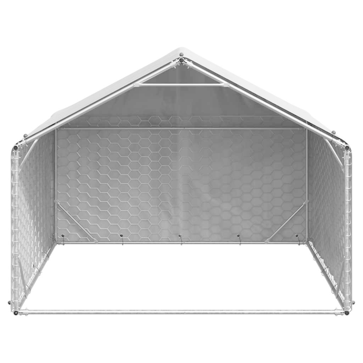 Create a playful and comfortable space for your furry friend with the outdoor dog kennel. Sturdy and durable construction: Crafted from high zinc galvanised steel, the dog kennel is designed to withstand the elements and provide long-lasting security for your pets, ensuring they stay safe in any weather condition.Compatible and versatile layout: The outdoor dog cage features a fully open side that easily connects with other kennels or outdoor accessories. This flexible configuration allows for a customisable space, enhancing your pet’s outdoor experience while providing ample room to explore and play comfortably.Weatherproof protection: The roof, sides, and back are securely covered with PE fabric, providing robust protection from rain and intense sunlight. This durable covering ensures that pets remain comfortable and sheltered in various weather conditions.Spacious design: The mesh dog cage features an expansive activity area, providing pets with ample space to explore, play, and relax comfortably. This thoughtfully designed environment encourages physical activity and promotes a sense of freedom, ensuring your furry friends can enjoy their time outdoors to the fullest.Effortless assembly: Designed for easy setup, this pet cage can be easily assembled, providing you with a hassle-free way to create a playful space for your pets.