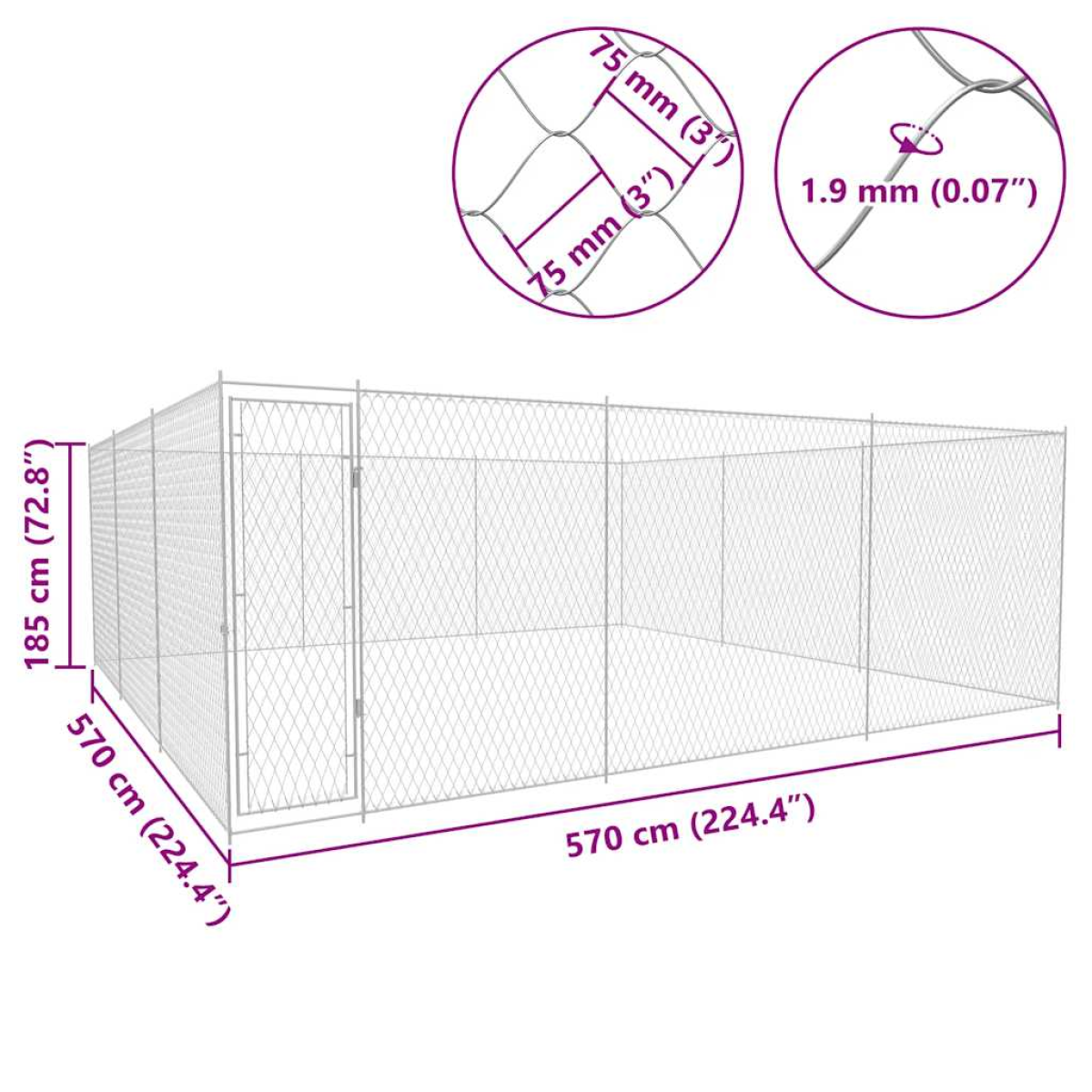 vidaXL Outdoor Dog Kennel Galvanised Steel 570x570x185 cm