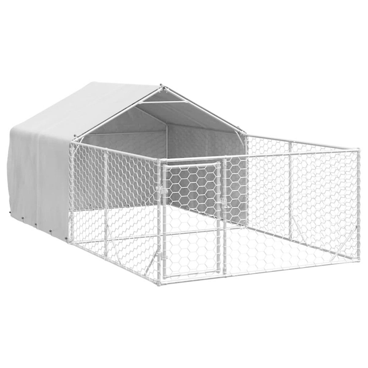 Create a safe and comfortable space for your furry friend with the outdoor dog kennel. Sturdy and durable construction: Crafted from galvanised steel, the dog kennel is designed to withstand the elements and provide long-lasting security for your pets, ensuring they stay safe in any weather condition.Water-resistant cover: The covered kennel features durable PE fabric, providing protection against rain. This sturdy covering ensures your furry friends stay dry, comfortable, and well-sheltered.Secure access: The fence features a convenient door for easy entry and exit, and with its lockable latch system, the kennel ensures your pets stay safely contained at all times.Spacious and well-ventilated: The kennel also includes a generous activity area unsheltered, giving pets plenty of room to explore and play comfortably. Its mesh design ensures airflow, creating a fresh and breathable environment that keeps pets comfortable.Multifunctional design: The dog kennel features a dual-purpose design with a gated, meshed run and a covered area. Your furry friend can enjoy the open air in the meshed area or retreat to the covered section for shade and shelter.