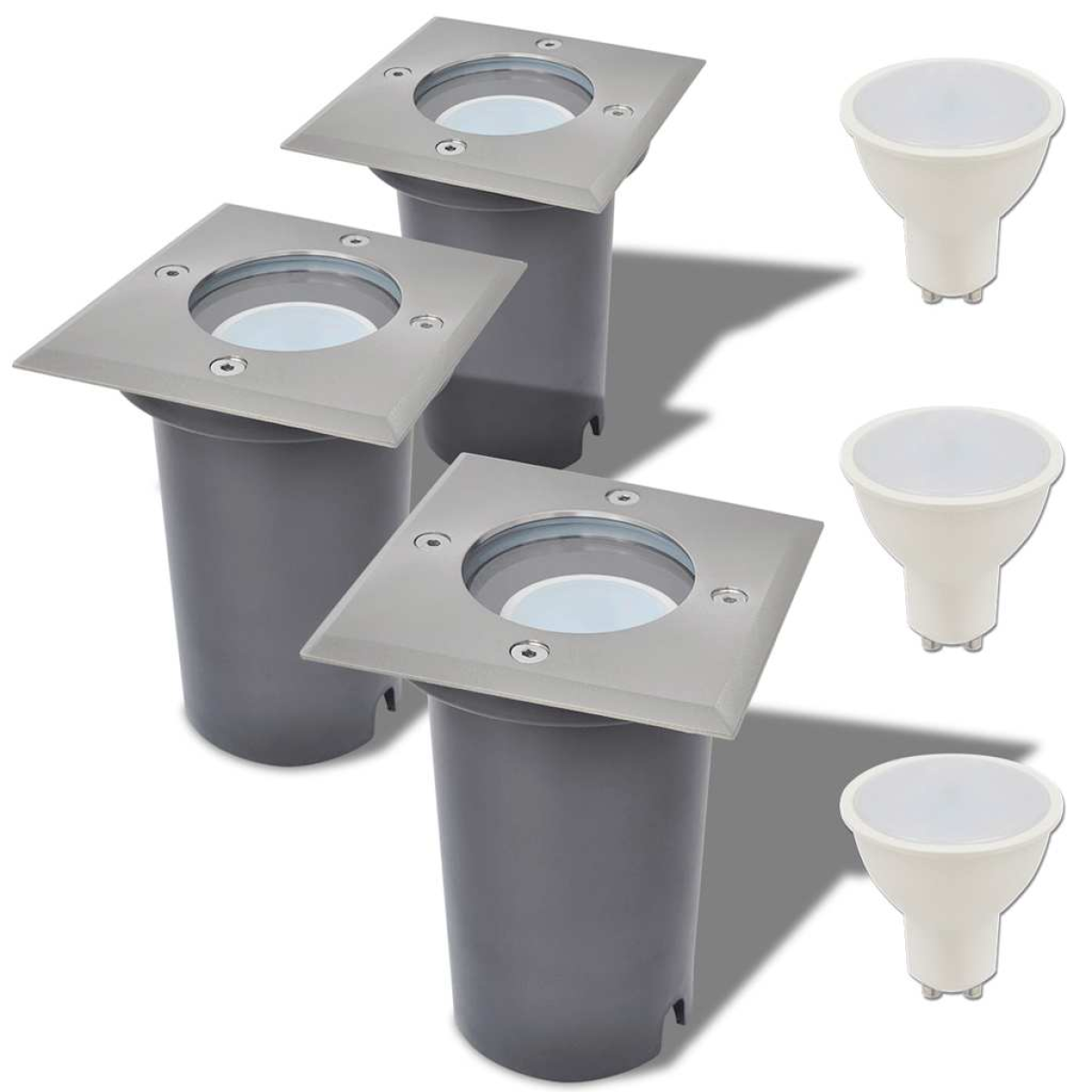 vidaXL Outdoor LED Ground Lights 3 pcs Square