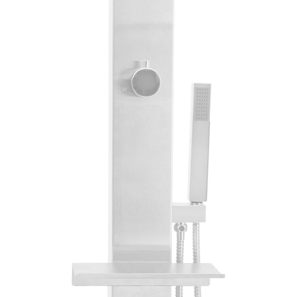 Our multifunctional shower panel system has a stylish design and will make a great addition to your garden and patio areas. The shower tower is made of durable stainless steel with a brushed finish and has a beautiful, curved design. It has two functions: rainfall and a handheld shower head, which can be easily selected by means of a knob. Immerse yourself in a truly relaxing shower experience and enjoy the modern style of this beautifully designed shower panel system! The shower panel system is easy to assemble. Delivery includes mounting accessories. Note: The product is not solar and not a hot shower panel system.