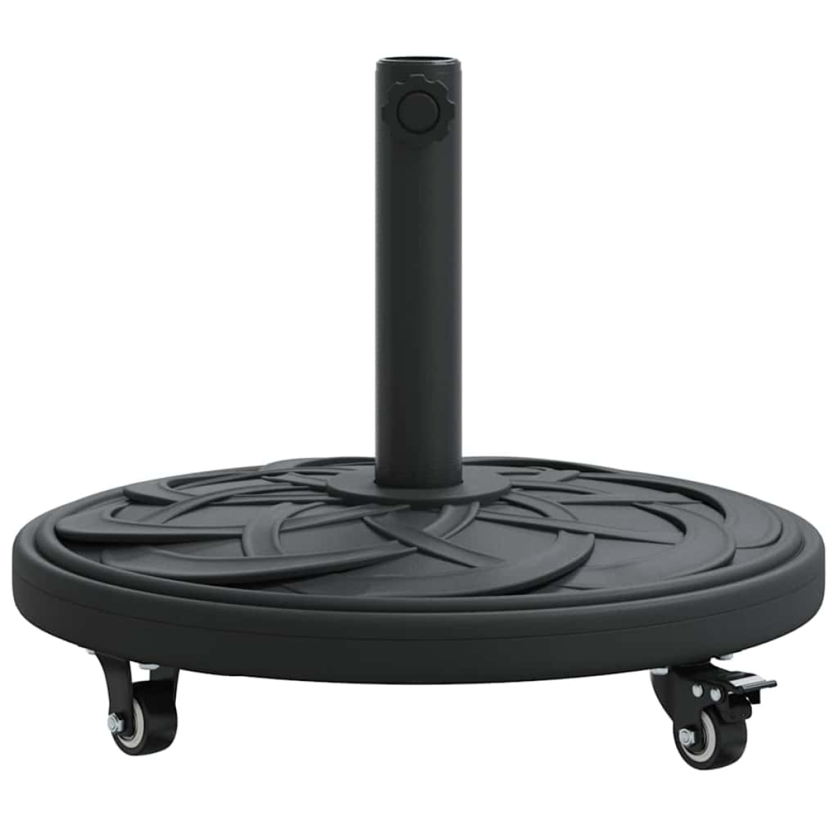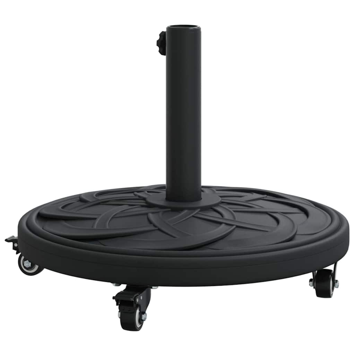 This Modern Parasol Base offers a sleek and functional design, ideal for enhancing outdoor spaces like gardens and terraces. Perfect for securing parasols with an art deco sophistication, this piece combines a bold geometric pattern with a minimalist aesthetic. It's a stylish addition that ensures your shade solution remains both steady and visually appealing in any outdoor setting. Robust Material: Made with a primary polyethylene frame and iron components, this parasol base offers exceptional strength and durability. The use of iron contributes a sturdy foundation, while polyethylene offers resistance against stressors like UV rays and moisture. Ideal for maintaining lasting performance in diverse weather conditions safely. Comprehensive Component Design: Featuring four wheels, two with a braking mechanism, this parasol base guarantees both easy mobility and secure parking. These wheels allow effortless repositioning, while the brakes maintain stability even on inclined surfaces, ensuring peace of mind. Art Deco Style: Inspired by bold geometric shapes of the Art Deco era, this base adds a decorative touch while providing practicality. Its clean lines and rich texture bring elegance to your outdoor space, complementing various parasol designs effortlessly. Functional Use: Designed for weather resistance and durability, this parasol base is perfect for outdoor use in gardens and terraces. It reliably secures your parasol, enduring wind and weather variations to keep your space comfortably shaded and enjoyable. Simple Assembly: Requires a screwdriver for safe setup, with assembly possible by one person. This straightforward process makes setup easy and accessible, ensuring that your parasol base is functional in no time, without a complicated install.