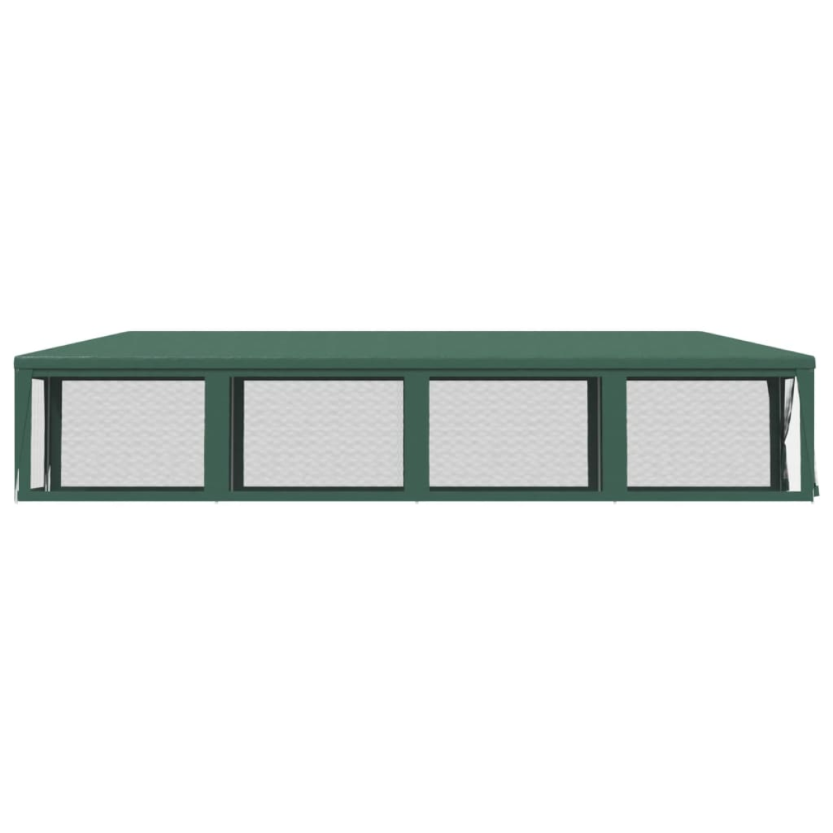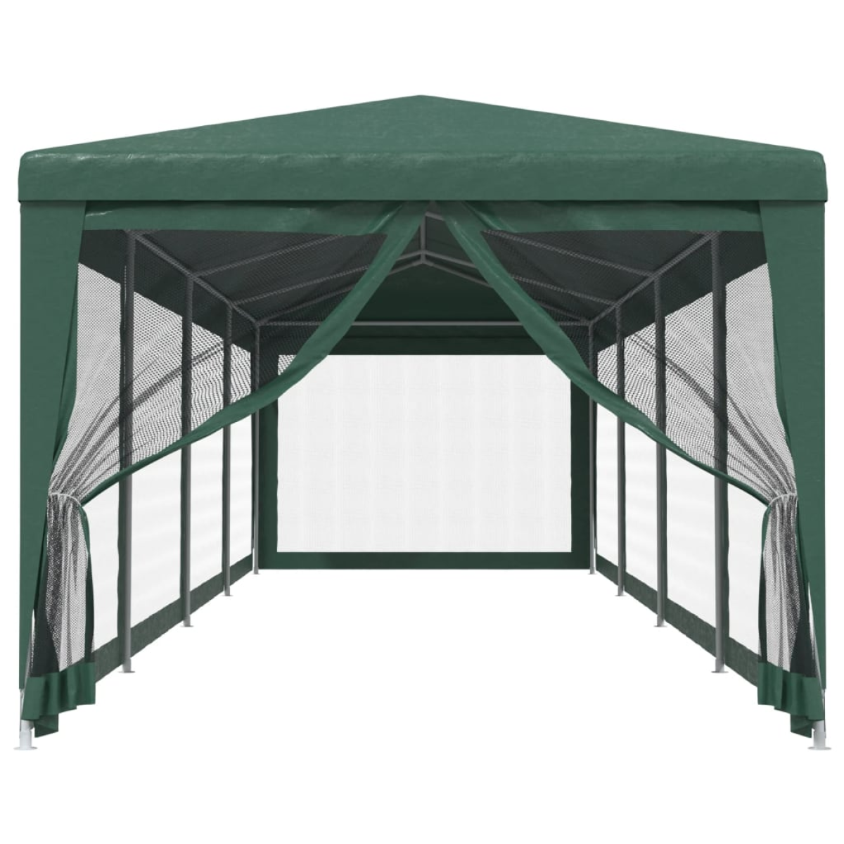 This super cool party tent, with a heavy-duty iron frame, a water-resistant roof and ten mesh sidewalls, is an ideal shelter from the sun. Premium material: This gazebo is made of high-density polyethene (HDPE) that protects you from direct sunlight and allows enough wind. The HDPE is specially treated, so it is water-resistant too.Iron frame: The iron frame of this pavilion ensures sturdiness and stability.Practical design: The marquee has ten mesh side walls, which protect you from pesky insects. And one of the side walls has a zipper for entrance and easy access.Wide applications: This event tent is an ideal choice for a wide range of outdoor events, such as shows, weddings, parties, BBQs, festivals and so on. Note:This product should NEVER be used under bad weather, such as strong wind, heavy rain, snow, storm, etc.Each product comes with an assembly manual in the box for easy assembly.