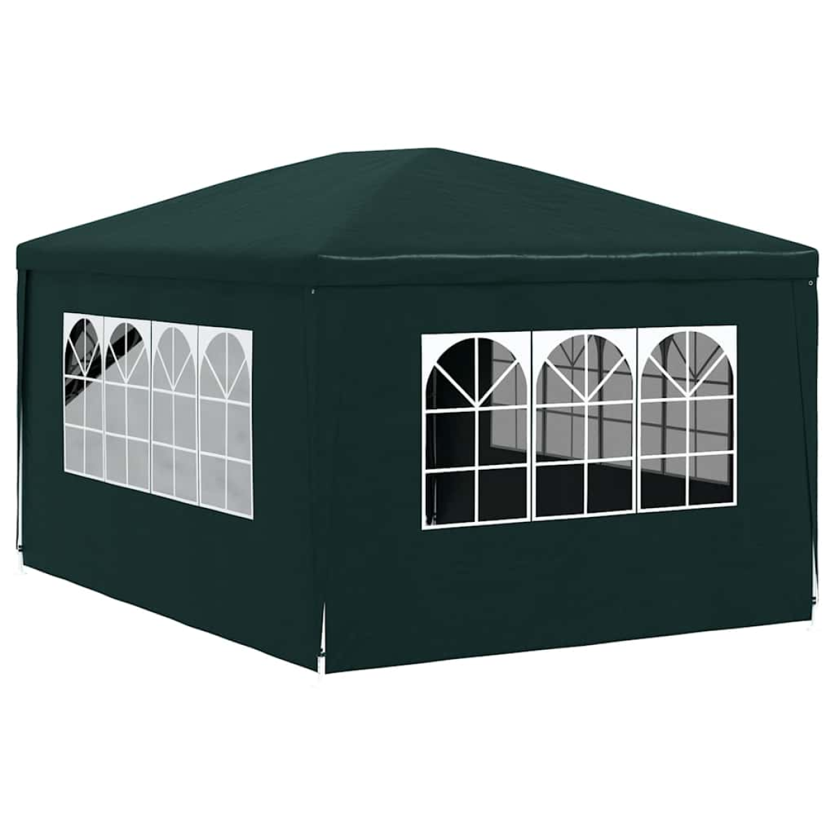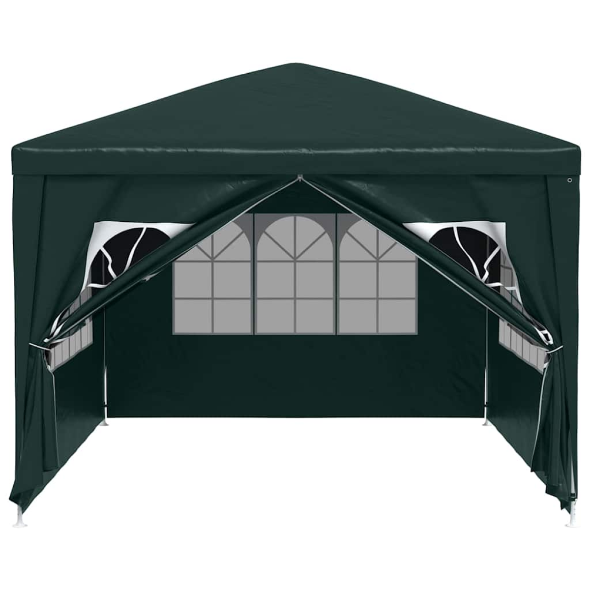 This partytent is ideal for a wide range of outdoor events, such as shows, markets, sporting events, weddings, parties, BBQs, camping trips, festivals, etc. UV- and water-resistant: The outdoor canopy has a UV- and water-resistant roof that is made of polyethylene material and is therefore perfect for outdoor use.Practical design: The partytent is designed with 3 removable sidewalls with clear windows to provide full protection.Stable frame: The frame is manufactured from rust-resistant steel, making the garden marquee stable and durable. Good to know:We recommend treating the canopy with a waterproof spray if the marquee is subjected to heavy rainfall. This product should NEVER be used under bad weather, such as strong wind, heavy rain, snow, storm, etc.This product is not suitable for use as a carport.