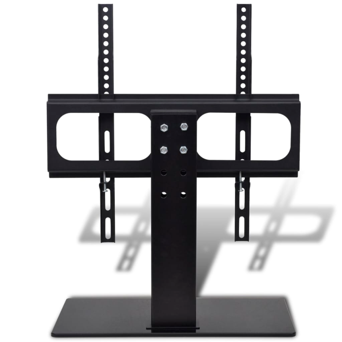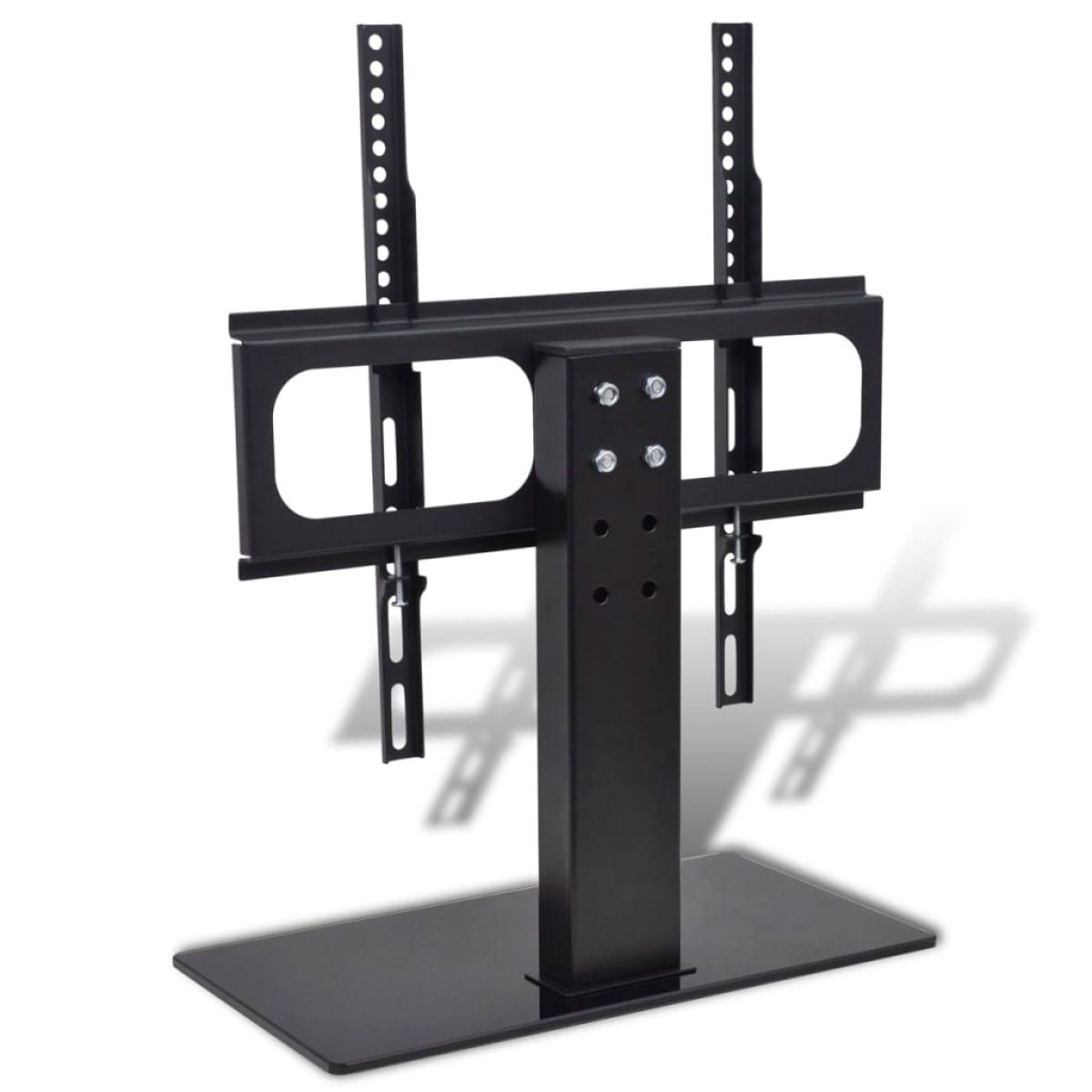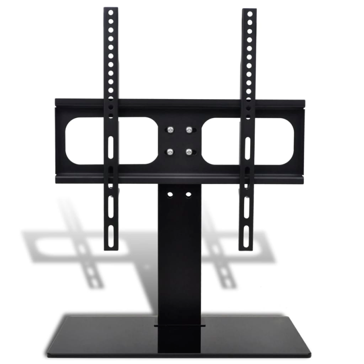 This pedestal TV stand offers a practical and space-efficient solution to mount your TV or monitors! Heavy-duty material: Powder-coated steel offers exceptional strength, durability, and resistance to rust and scratches, ensuring long-lasting performance and reliability.3 levels of height adjustment: The TV mounting plate offers 3 levels of height adjustment, allowing you to adjust the height by 4 cm to accommodate various TV sizes and seating preferences.Enhanced stability: The wide tempered glass base comes with anti-slip rubber feet to prevent scratches and ensure stability on your tabletop. Good to know:Make sure your TV has four threaded mounting holes on the back of the screen. We recommend measuring the VESA hole spacings on your TV before purchasing to ensure compatibility.Make sure the width of your TV fits on the TV stand.We provide various screws and spacers to fit your TV, but they may not work for all brands. You may need to use the original screws that came with your TV or buy special screws yourself.