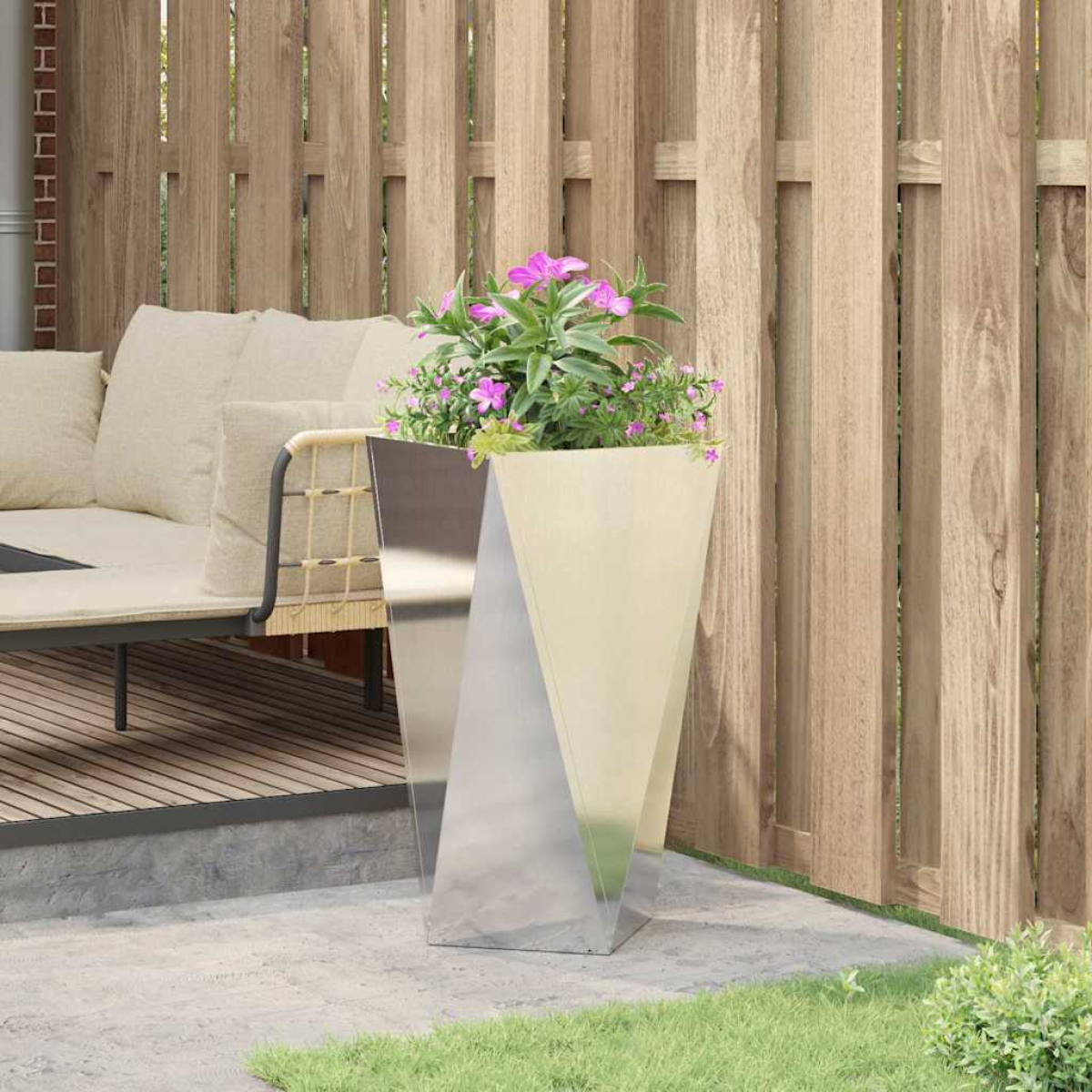This garden planter, a versatile and robust outdoor addition, is perfect for enhancing your home's exterior with vibrant greenery. Its clean-lined, steel construction provides a contemporary look, making it a charming focal point for any garden or terrace environment. Designed for those who appreciate both style and functionality, this planter offers an optimal solution for showcasing plants while ensuring longevity and reliability, thanks to its durable materials and thoughtful design. Materials: Crafted entirely from steel, the planter boasts formidable strength and resilience, making it impervious to harsh weather conditions. This material selection guarantees a blend of modern aesthetics and practical endurance, allowing the planter to remain a constant in your garden for years. Included Components: The rectangular planter is equipped with a built-in base that provides extra stability, enabling it to hold soil and plants securely. Designed with a planter box style, it's perfect for planting shrubs or ornamental grasses, neatly encapsulating your garden design vision. Features /Function /Design: Specifically built for outdoor use, its durable structure stands up to the elements while maintaining its elegant look. The corrugated sides not only introduce a textural element but also contribute to its rigidity and lasting durability, enhancing the planting experience. Recommended Uses: Ideally suited for garden and terrace settings, this planter excels as a striking container for growing decorative plants. Whether placed along walkways, within patio spaces, or by entrances, its adaptability to numerous environments makes it a valuable addition to any outdoor decor. Care &Maintenance: Designed for ease of care, this planter requires minimal upkeep. Simply clean with a dry cloth to maintain its appearance and integrity. Its steel composition renders it naturally resistant to common garden debris, ensuring long-term satisfaction.