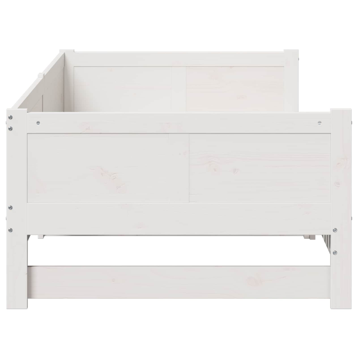 This Modern Pull-out Day Bed offers an elegant and functional sleeping solution, perfect for those seeking a minimalist and clean design in their bedroom. Designed with practicality in mind, this trundle bed frame features a sleek, rectangular shape that complements a wide range of modern interior styles. Ideal for personalized, space-conscious living areas, this furniture piece unfolds to provide additional sleeping arrangements for guests and family members alike. Sturdy Frame: Constructed from high-quality solid pine wood, the day bed ensures reliability and endurance. The robust framework supports consistent use, giving you peace of mind when hosting frequent guests or for everyday use as a primary sleeping solution. Sleek, Modern Design: Showcasing simplicity and functionality, this day bed reflects modern style characterized by clean lines and minimal adornment. It fits seamlessly into contemporary spaces, adding a touch of sophisticated charm to any bedroom. Space Efficiency: The pull-out trundle feature provides significant space-saving benefits. Easily extend the sleeping area when needed and retract it to save space when not in use, offering a versatile option for compact rooms or apartments. Stable Platform Slatted Base: The platform slatted frame ensures a firm and even support for the mattress, promoting restful sleep without the worry of sagging or shifting. This even support extends the life of mattresses, providing comfort to sleepers of all ages. Easy Maintenance: Keeping the day bed in pristine condition is straightforward with simple care instructions. A quick wipe with a damp cloth keeps the surfaces looking fresh and clean, maintaining the furniture's elegant appearance over time.