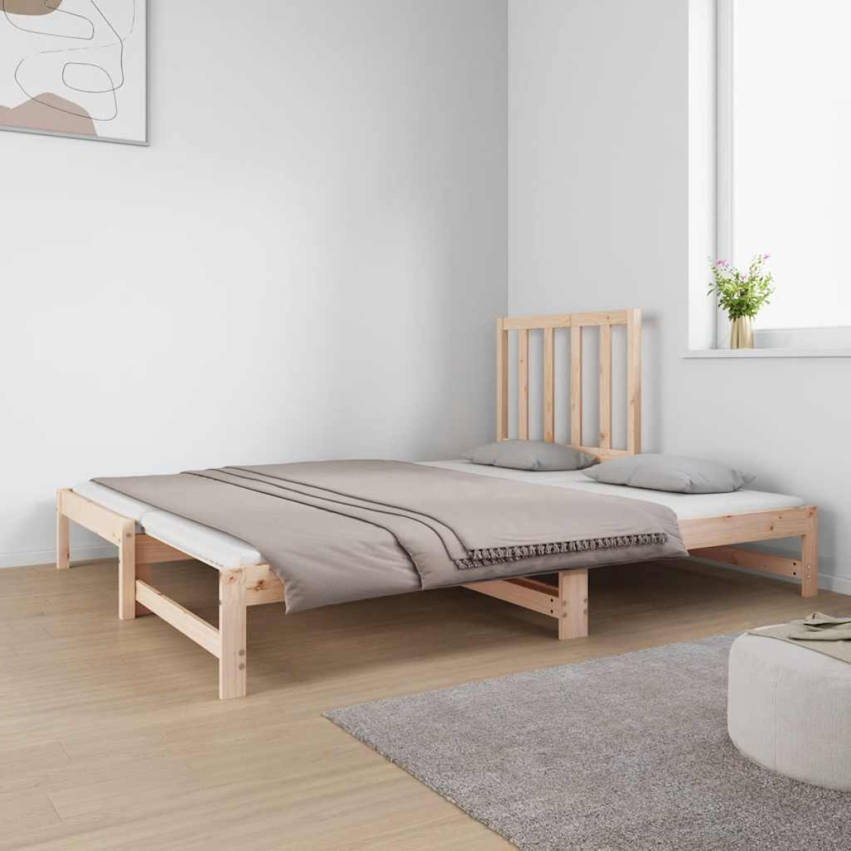 This versatile wooden day bed can be used as a bed in your bedroom and also fits perfectly as a sofa in your living room. Solid pinewood: Solid pine wood is a beautiful natural material. Pine wood has a straight grain, and the knots give the material its signature, rustic look. This guest bed is made of solid pine wood, more stable and durable.Slatted design: The slatted base provides better air circulation to keep the mattress fresher for longer, improving the weight capacity of the bed and ensuring stability.Easy usage: This sleepover bed is very convenient to use and does not require a box spring or foundation. Just place the mattress on top and enjoy a restful sleep or sitting time!Pull-out sofa bed: This wooden day bed can be used as a sofa during the day or as a bed at night, providing a quick solution for hosting overnight guests while saving space.Comfortable support: This bed header provides you with excellent back support when sitting up in bed to read or watch movies. Note:The delivery includes a daybed frame only. The mattress is not included. You can check our shop for the matching mattresses.Each product comes with an assembly manual in the box for easy assembly.